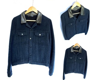 モヘア ウール レザー ジャケット メンズ 48 MADE IN ITALY