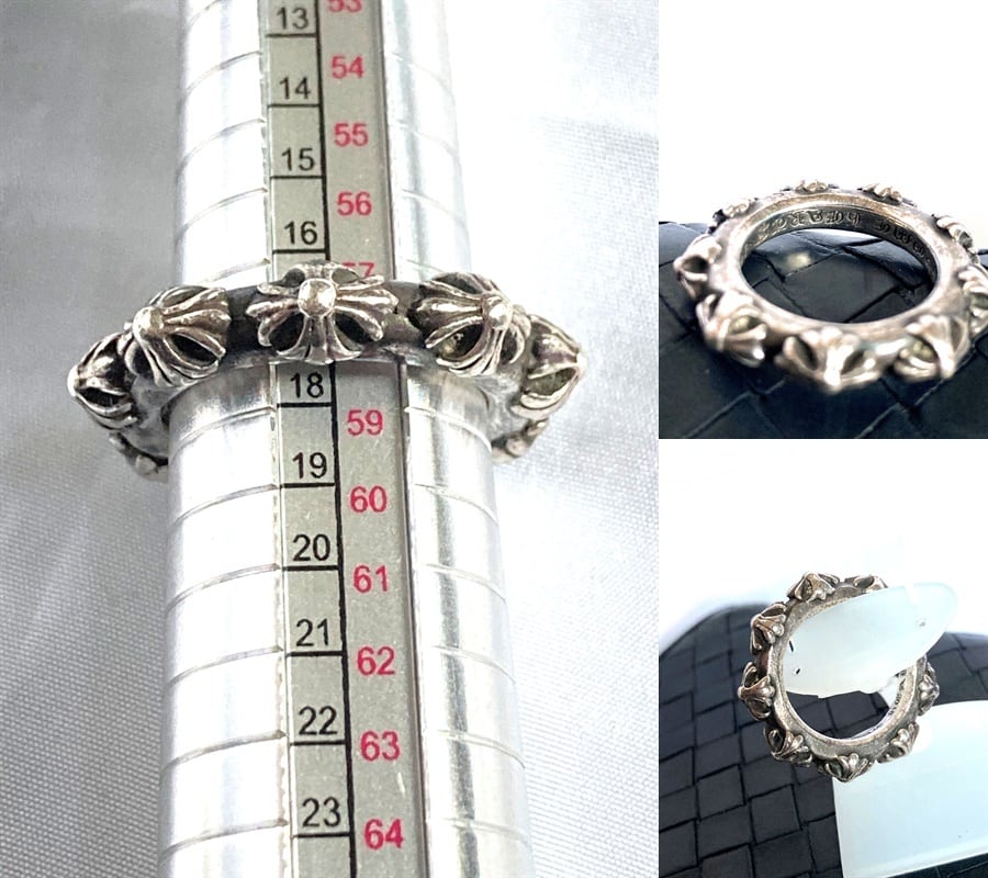 シルバークリーナーを使用するとピカピカになりますが、このクロムハーツのリングはこの燻がカッコいいので、クリーナーで磨くのはおすすめしません。
