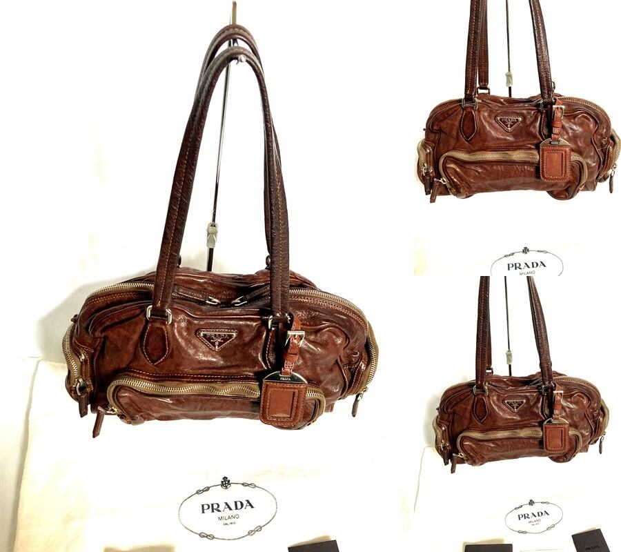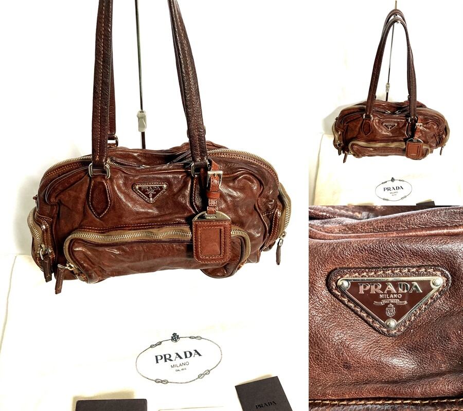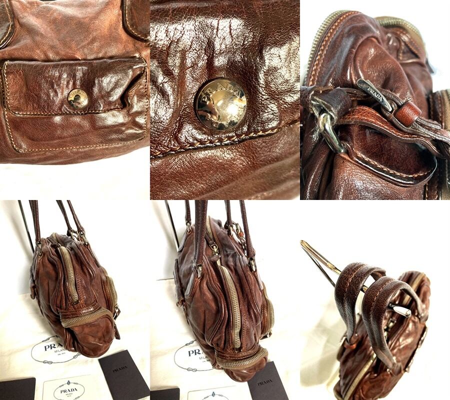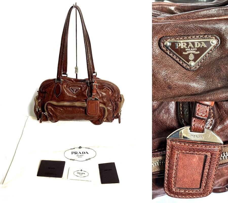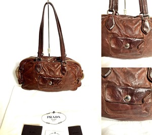 PRADA プラダ プレート ラムレザー アンティーク ウォッシュドレザー ハンドバッグ BR2304