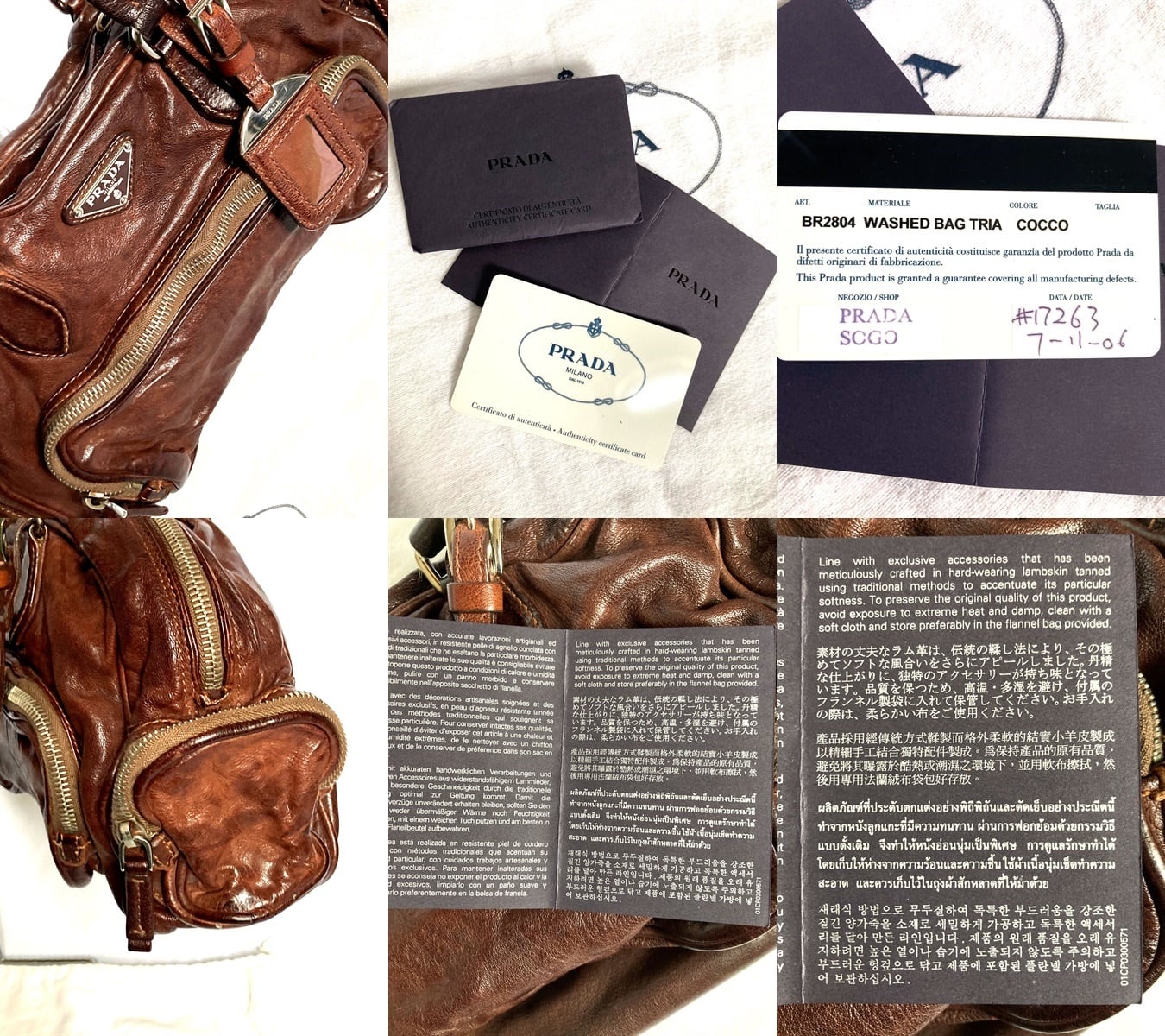 定価21万 美品 ギャラ付き 保存袋 PRADA プラダ プレート ウォッシュド レザー ハンドバッグ BR2304 ショルダー 2way ブラウン