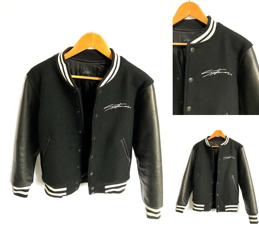 ブランドらしいオールブラックのカラーリングに、胸と背中にあしらったSaturdaysのスクリプトフォントがデザインアクセント。