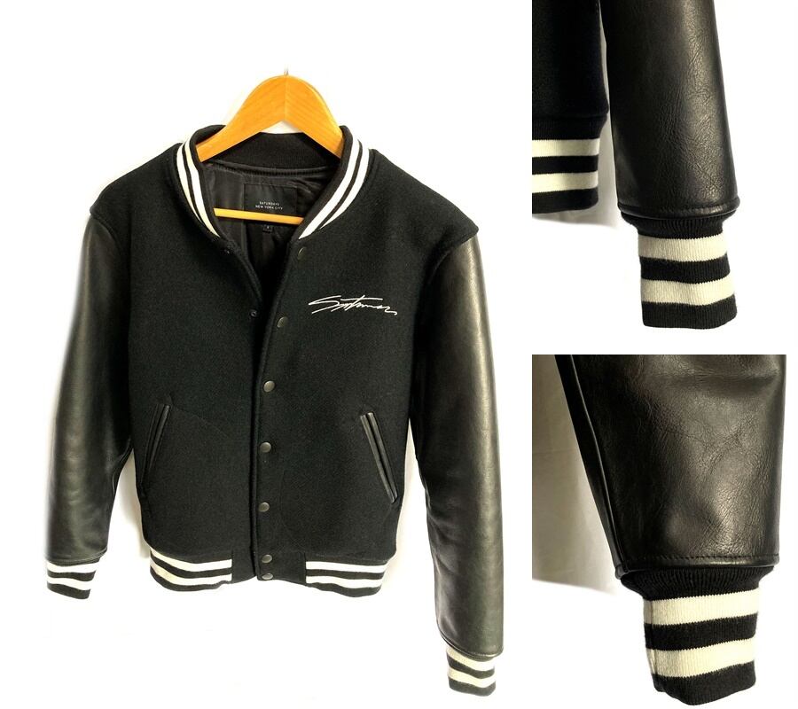 美品 名作 完売 サタデーズ サーフ NYC SATURDAYS レザー メルトン ウール ブラック スタジャン S メンズ 定価52800円