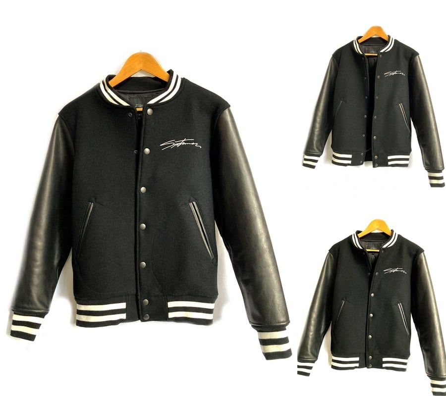 ボディにはヘビーメルトン素材を使用し、袖部分には牛革を使用したベーシックなVarsity Jacket。