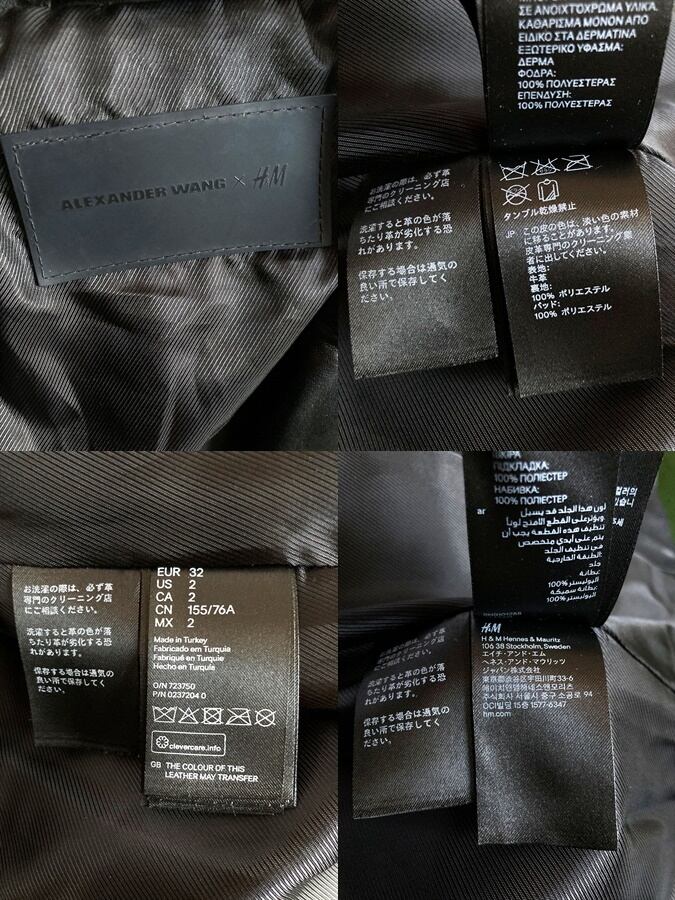 Alexander Wang x H&M 限定 アレキサンダーワン 牛革 レザー ライダース キルティング 中綿入り ライダースジャケット XS