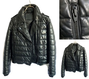 中綿入り 牛革 キルティング レザーライダースジャケット