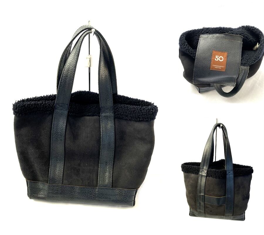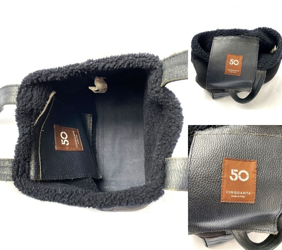 50 CINQUANTA チンクアンタ 別注 レザー ムートン トート バッグ ミニ 定価50600円 ブラック リアルムートン MADE IN ITALY