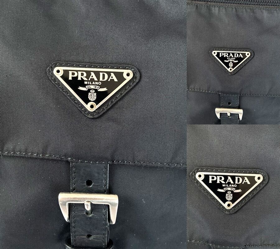 PRADA プラダ ロゴプレート ナイロン×レザー ショルダーバッグ