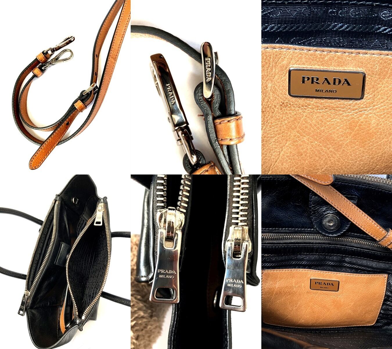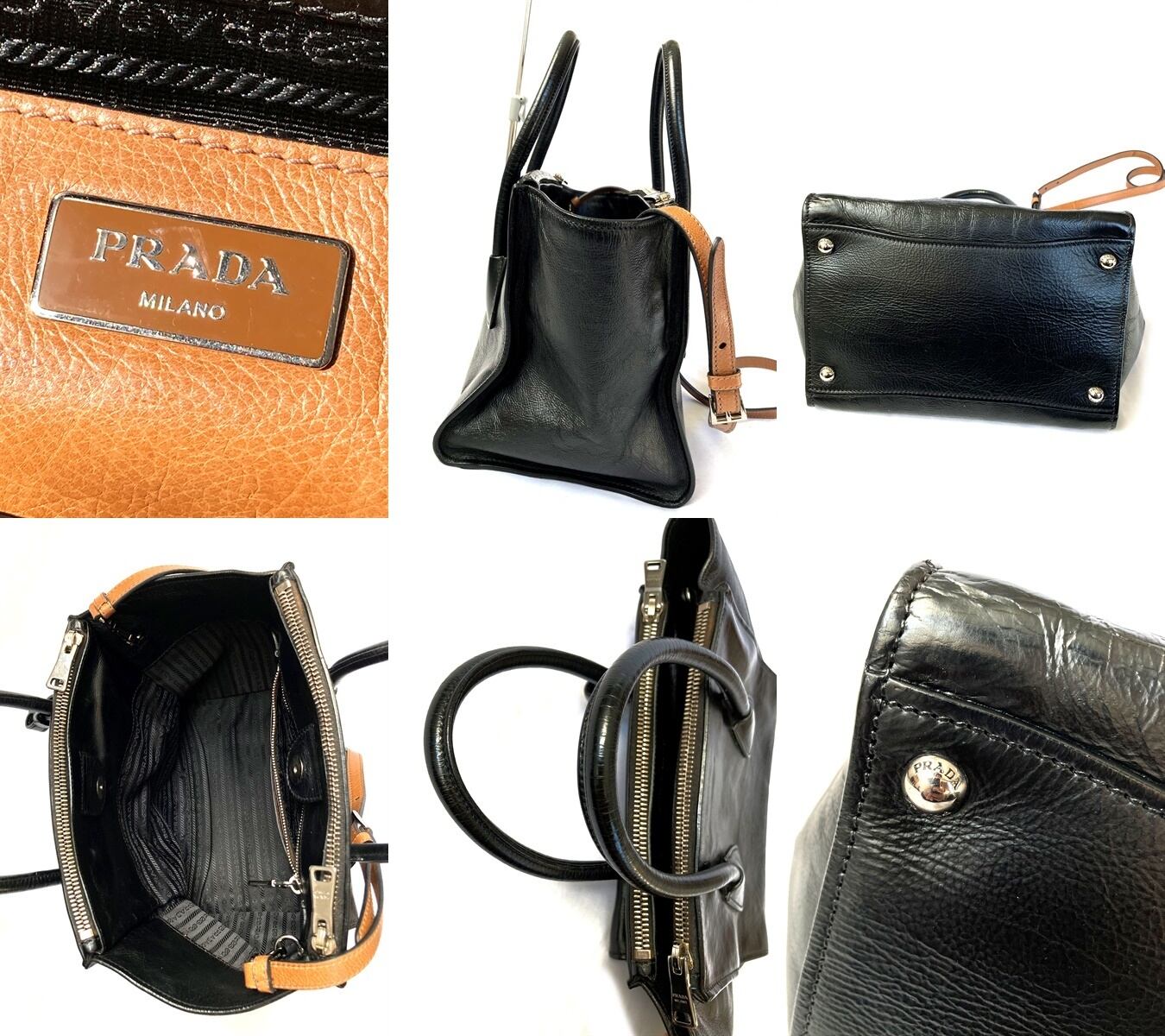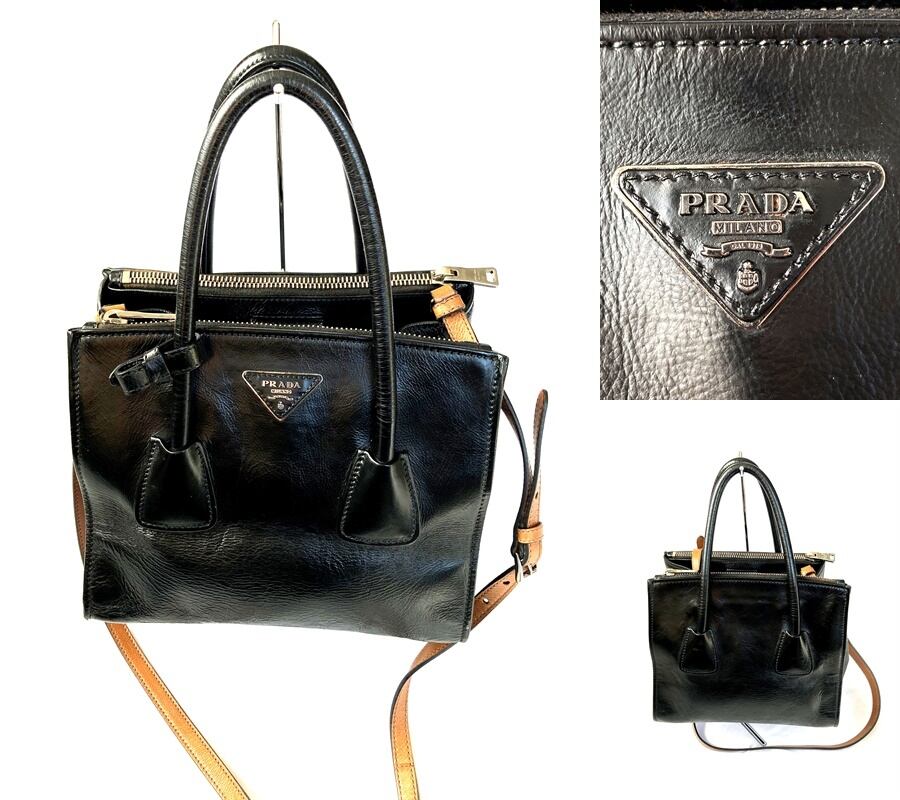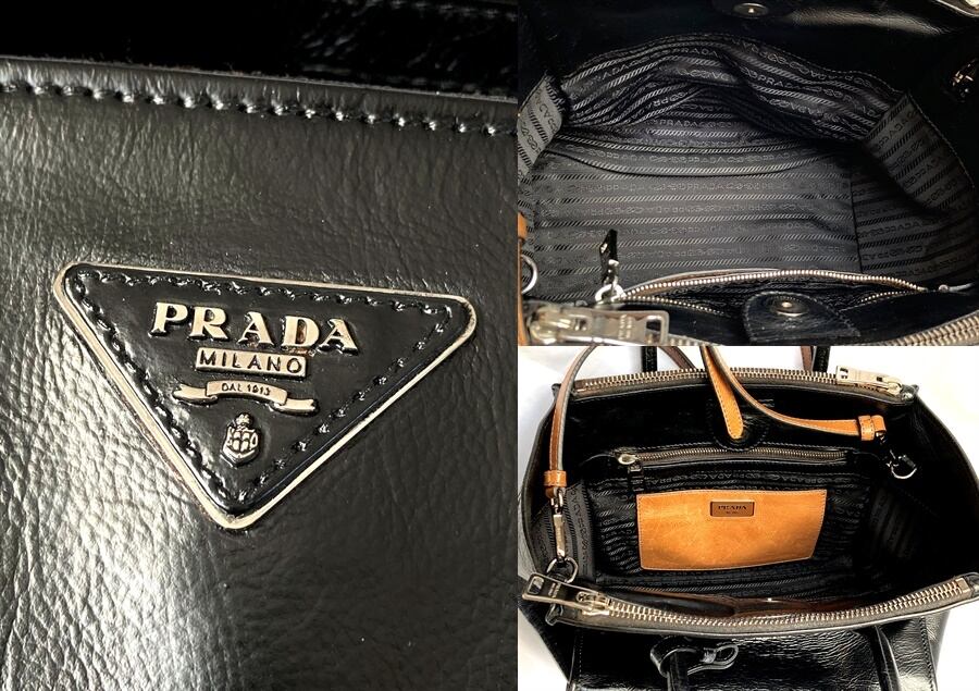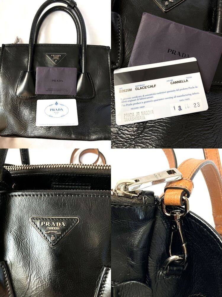 良品 国内正規 ギャラ付き 定価25万 PRADA プラダ プレート ブラック レザー 2way トート ハンドバッグ ショルダー 黒 B2625M 送料無料 匿名配送