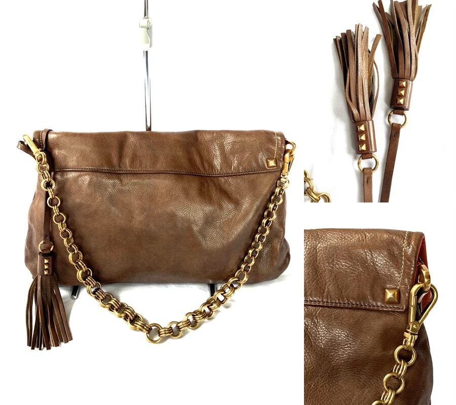 良品 国内正規 VITELLO CHAIN ギャラ付き 完備 PRADA プラダ レザー チェーン ショルダー ハンドバッグ 2way クラッチ スタッズ