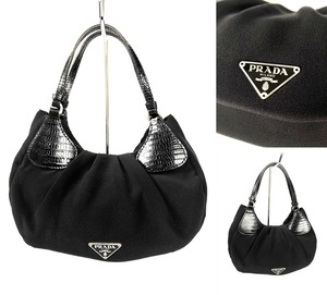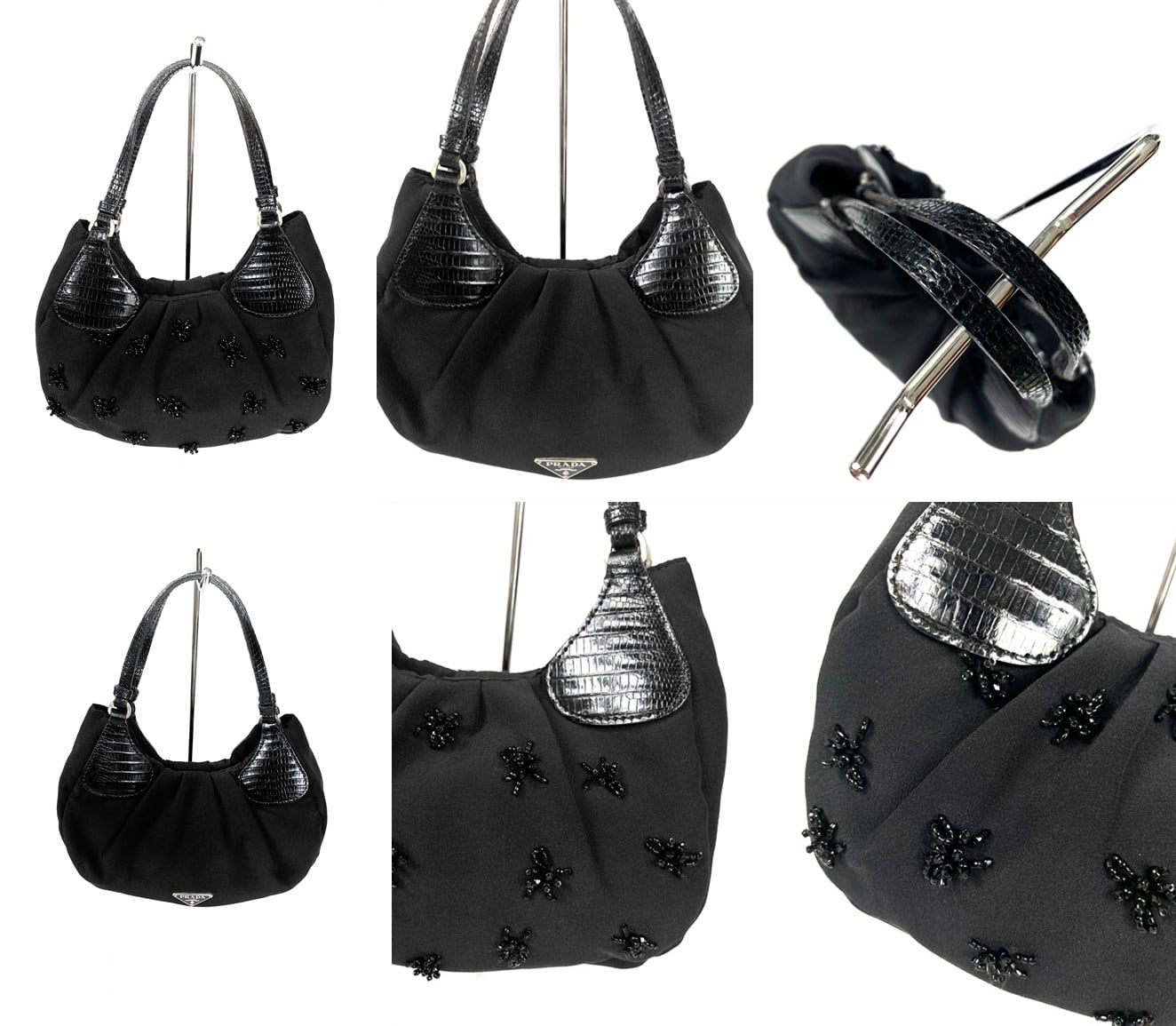 PRADA プラダ ロゴプレート レザー サテン&シルク スパンコールビーズ