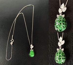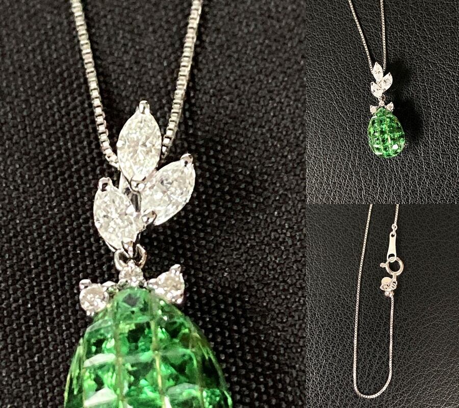 K18 WG ツァボライト グリーンガーネット ネックレス グリーンガーネット 2.05カラット / ダイヤモンド 0.28カラット