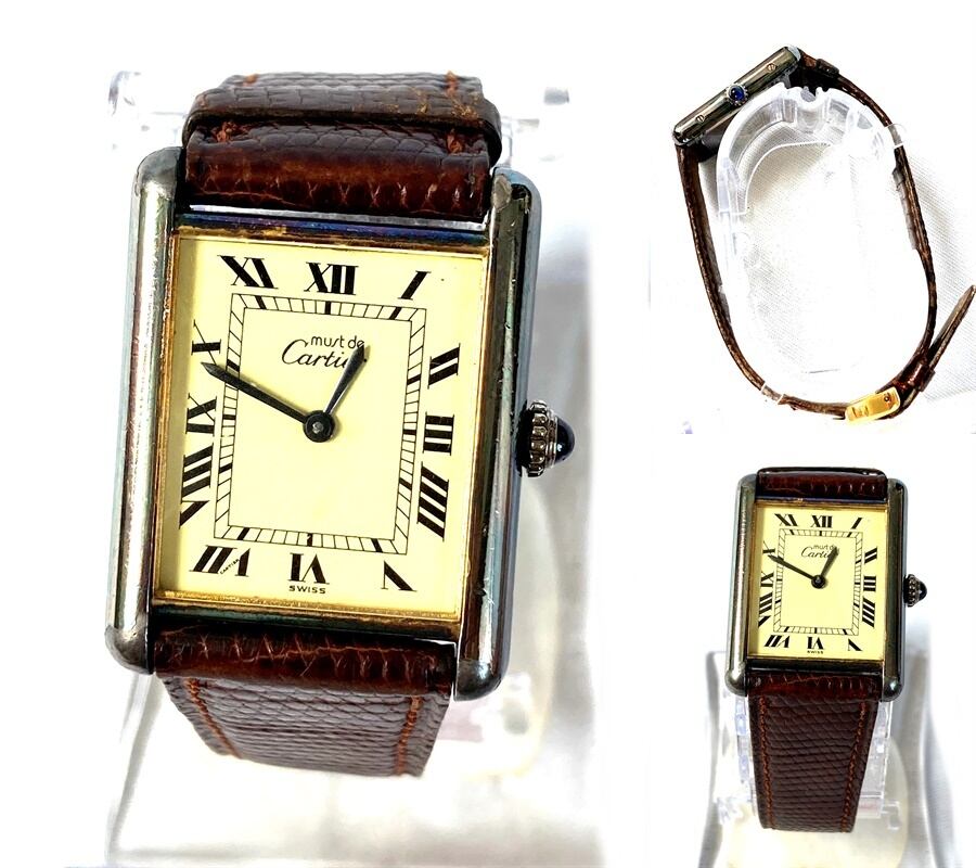 Cartier VERMEIL 925 手巻き メンズ アンティーク ヴィンテージ カルティエ タンク マストタンク ヴェルメイユ メンズ 時計 シルバー925