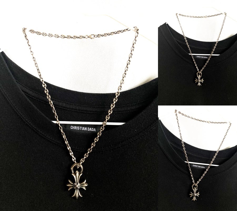 このCHプラスに合う重厚なペーパーチェーンのような燻しのシルバーチェーンを合わせました。