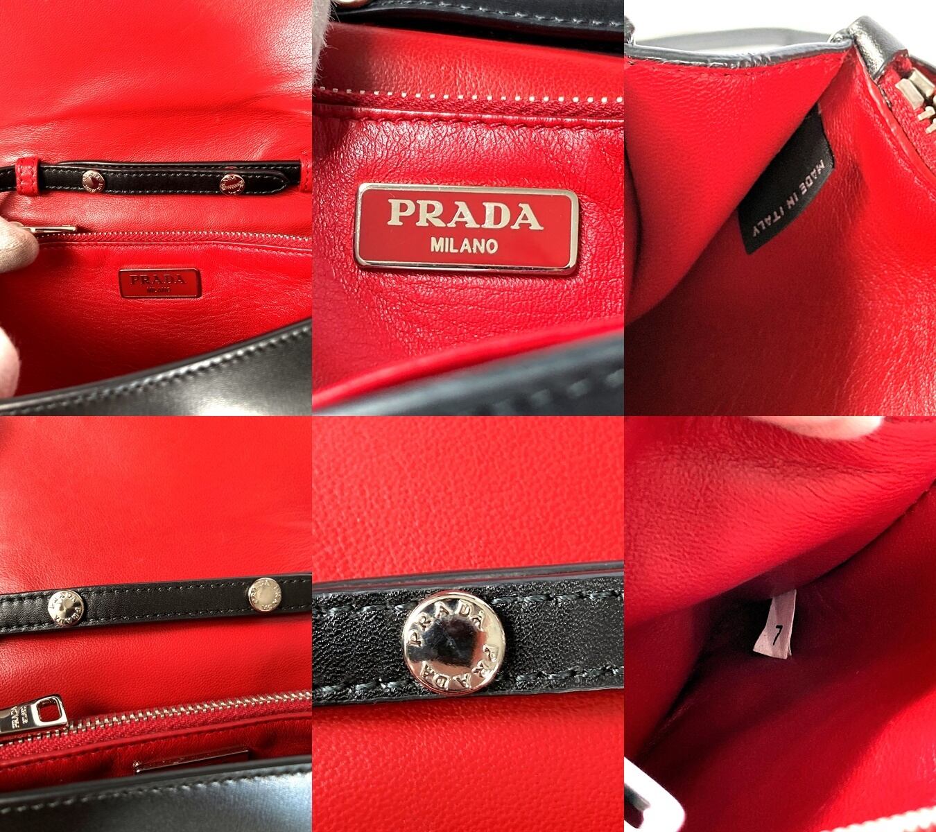 シンプルかつ高級感溢れる柔らかいカーフレザーに、フロントにはPRADAのプレートがあり、上品で高級感あります。