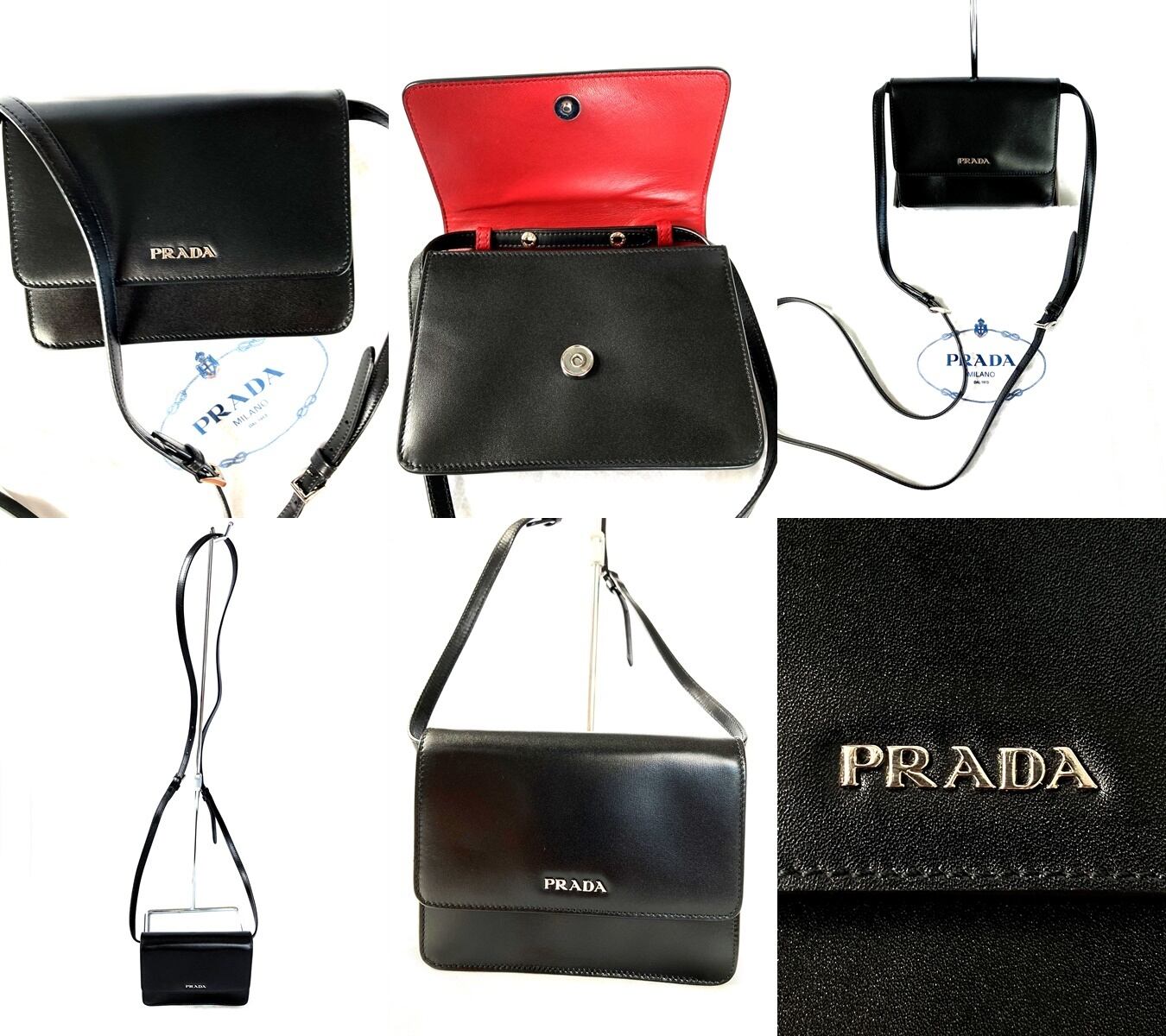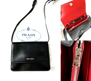 PRADA プラダ ミニ ショルダーバッグ ボックスカーフ レザー ポシェット BT1031 ブラック