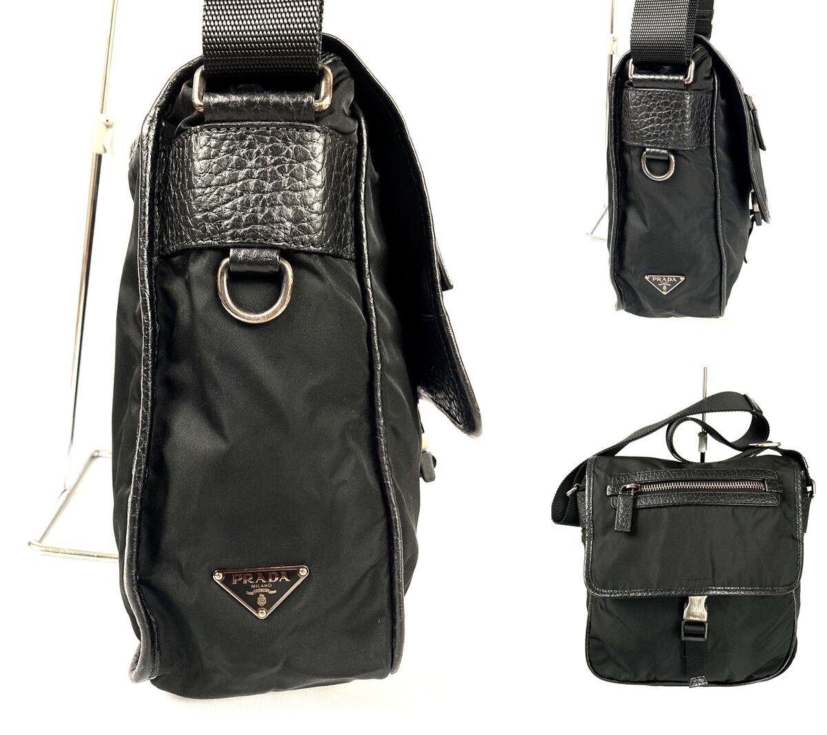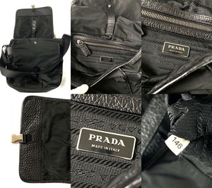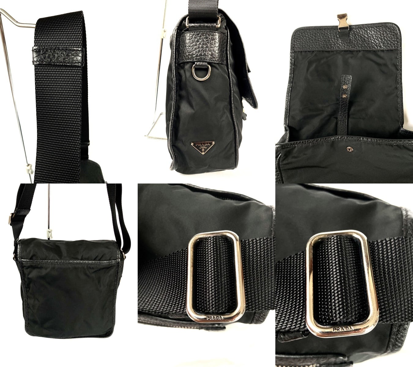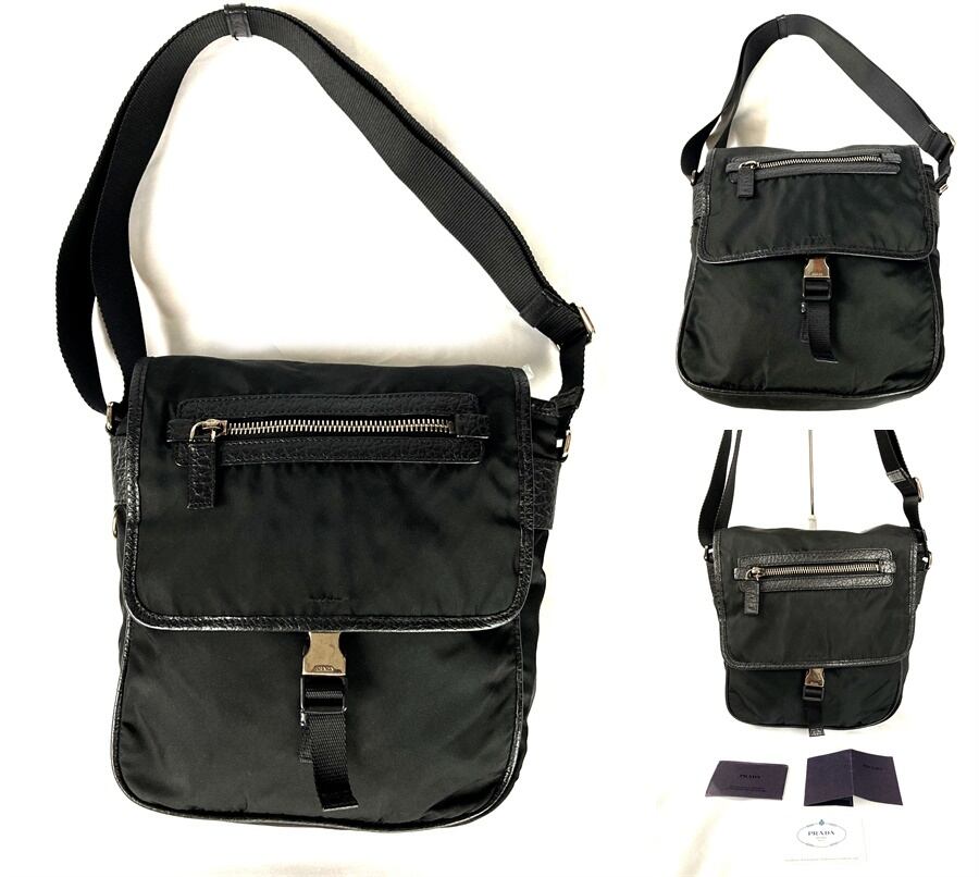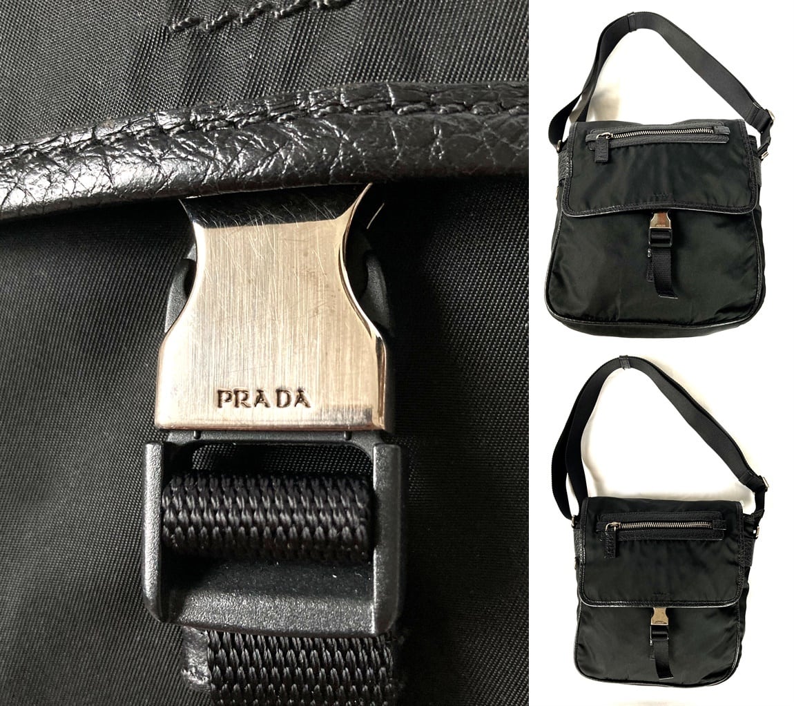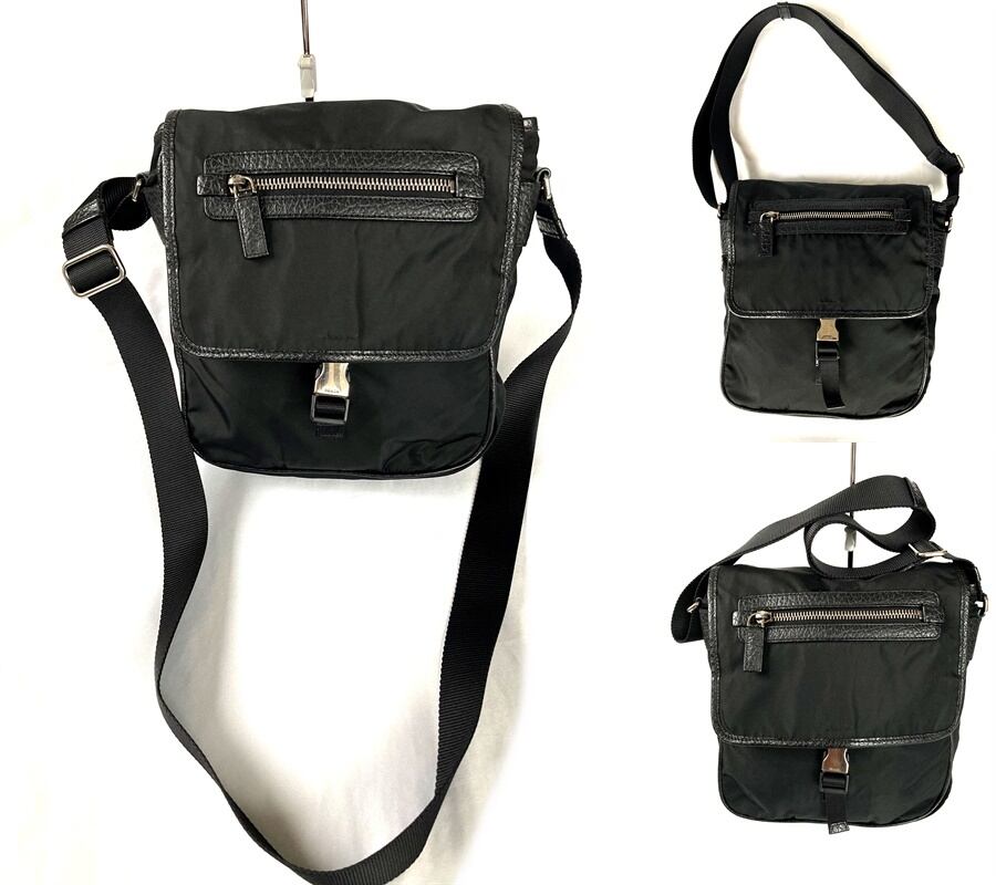 PRADA プラダ ロゴプレート テスート ナイロン × レザー ショルダーバッグ NERO ブラック メンズ