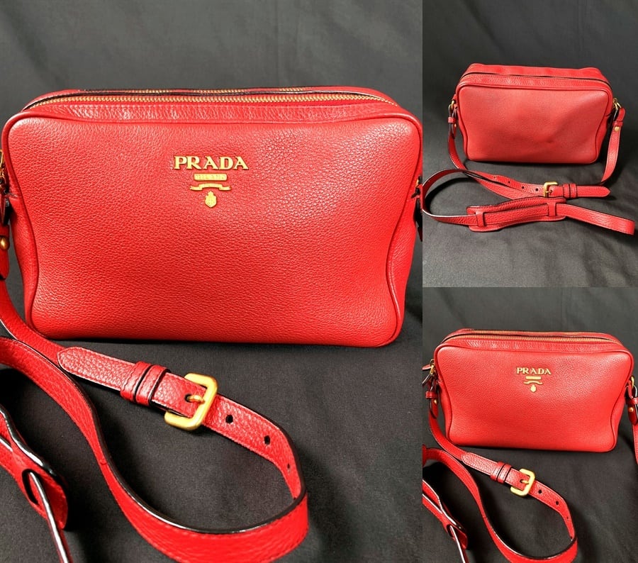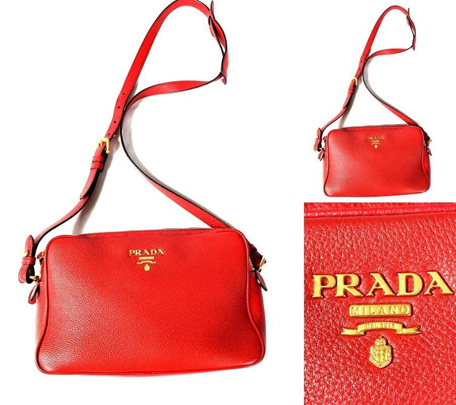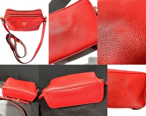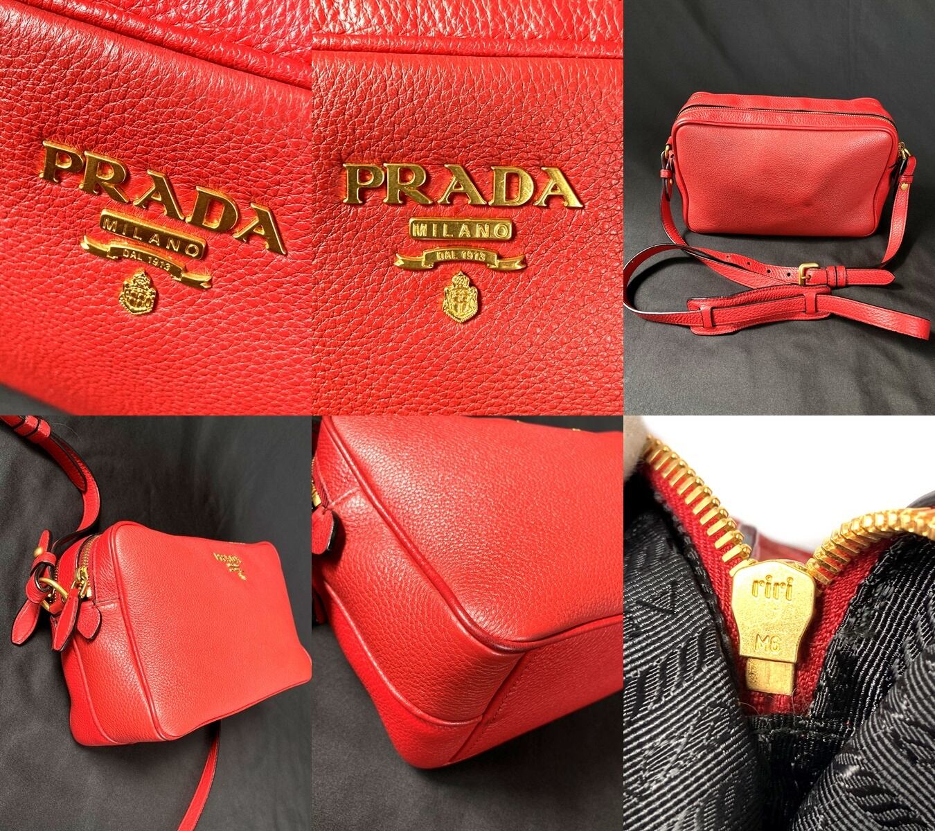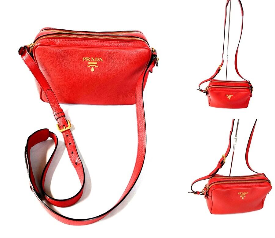 PRADA プラダ 2018年秋冬 VITTELLO DAINO CAMERA BAG シボ レザー ショルダーバッグ カメラバッグ レッド