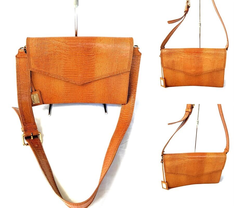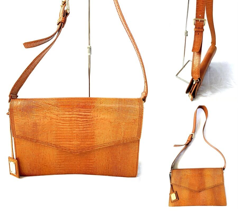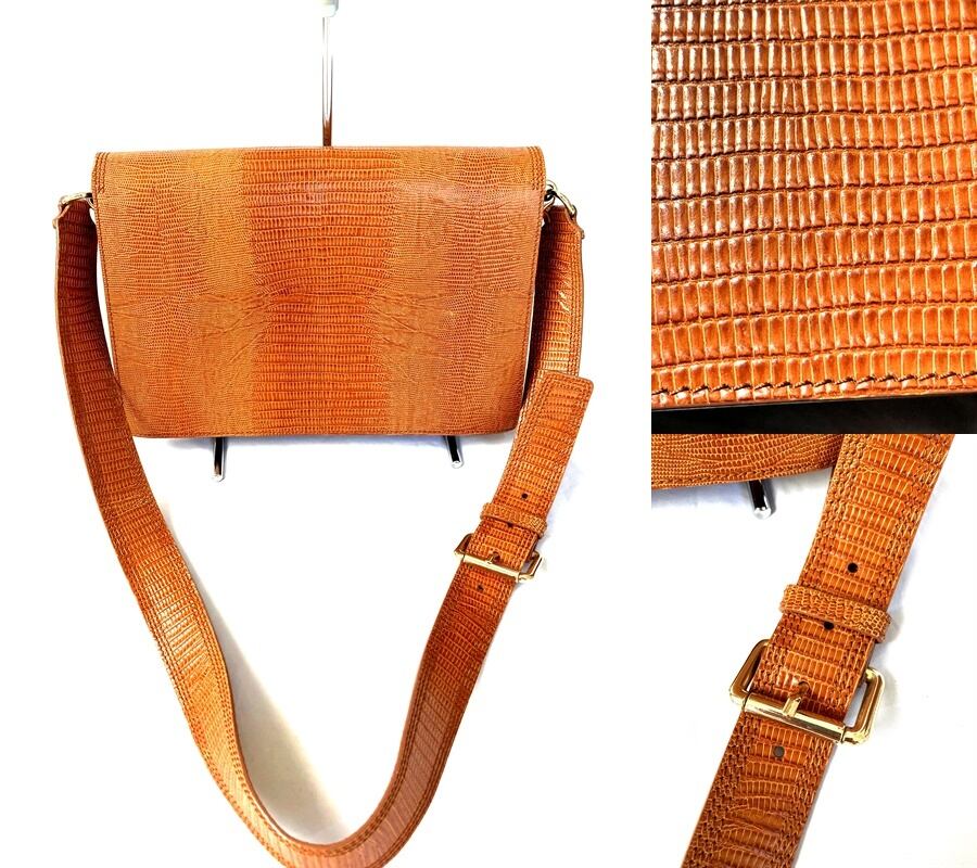 リザード レザー ショルダーバッグ ポシェット ブラウン