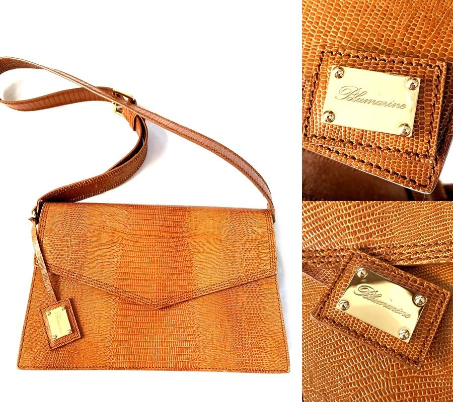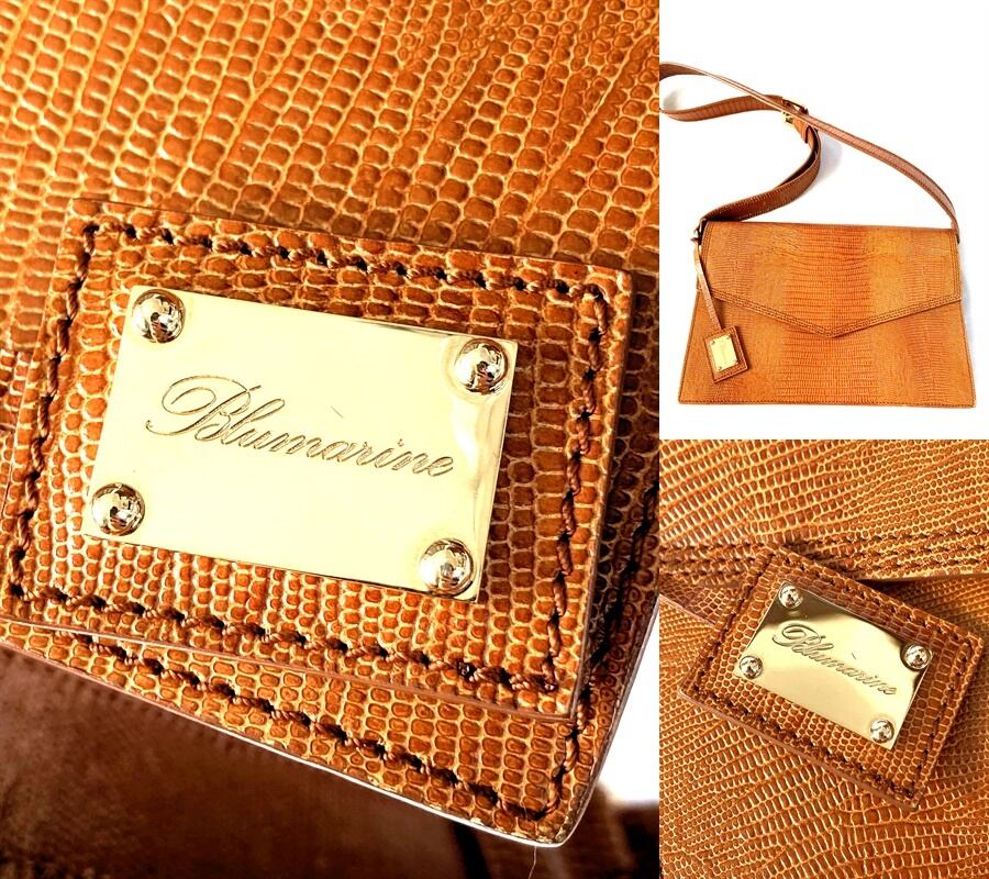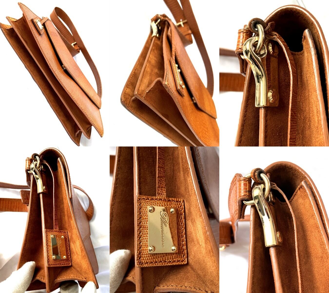 Blumarine ブルマリン リザード レザー ショルダーバッグ ポシェット ブラウン
