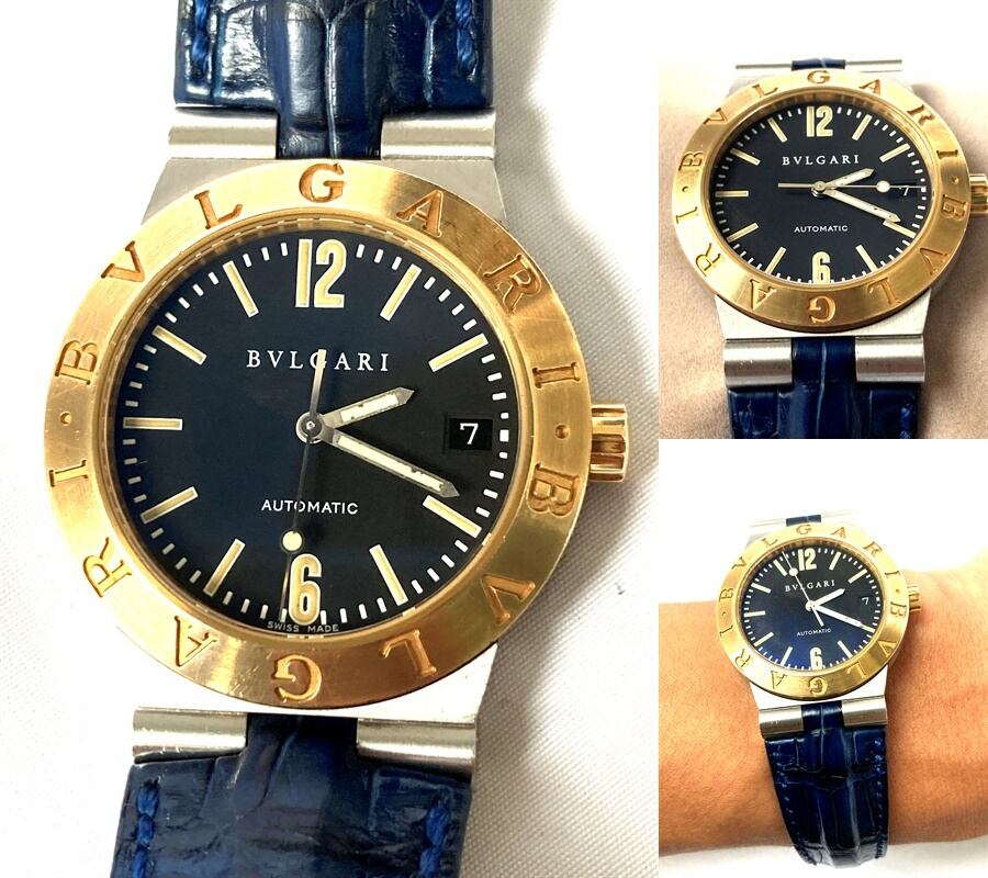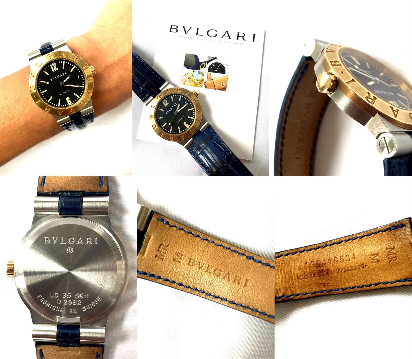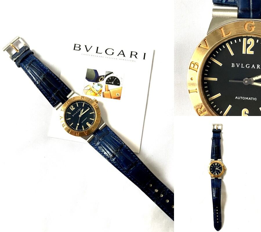BVLGARI ブルガリ K18YG SS AT 純正 クロコ レザー ベルト ディアゴノスポーツ 時計 オートマ 自動巻き メンズ デイト