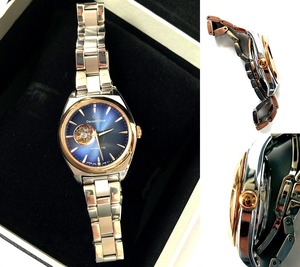 レディース 時計 AT オートマチック 自動巻き オープンハート ブルー サファイアクリスタル ダイヤモンド文字盤