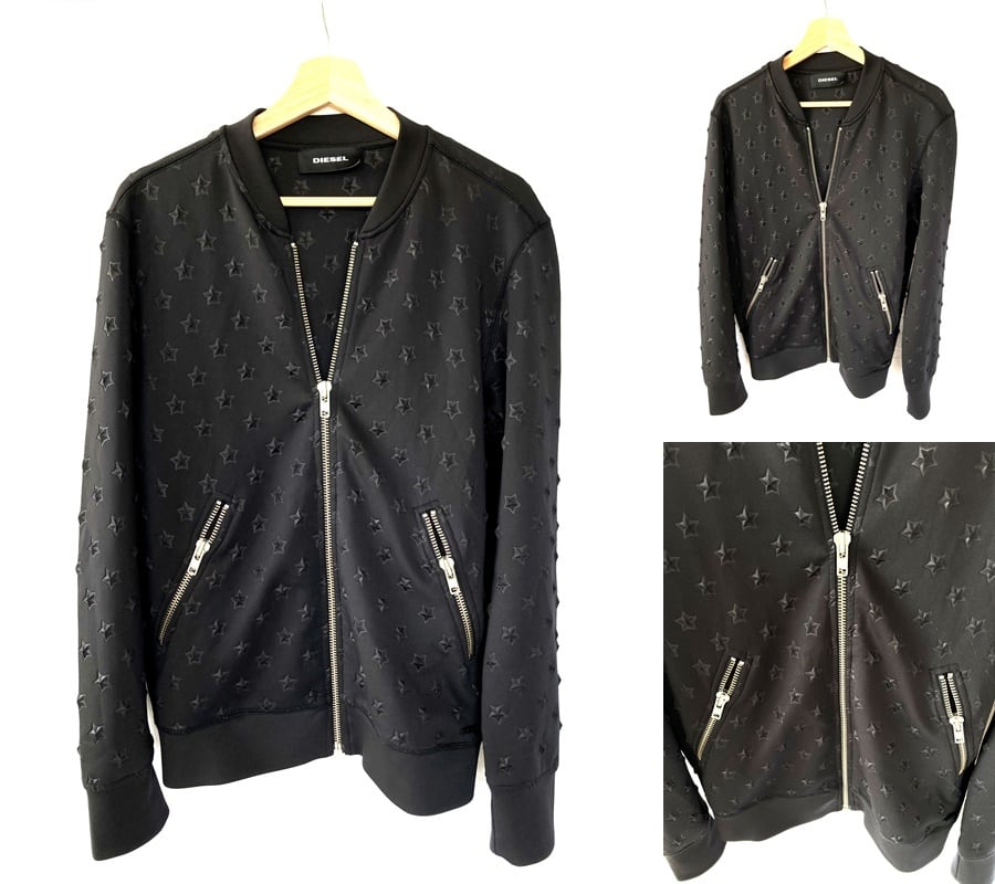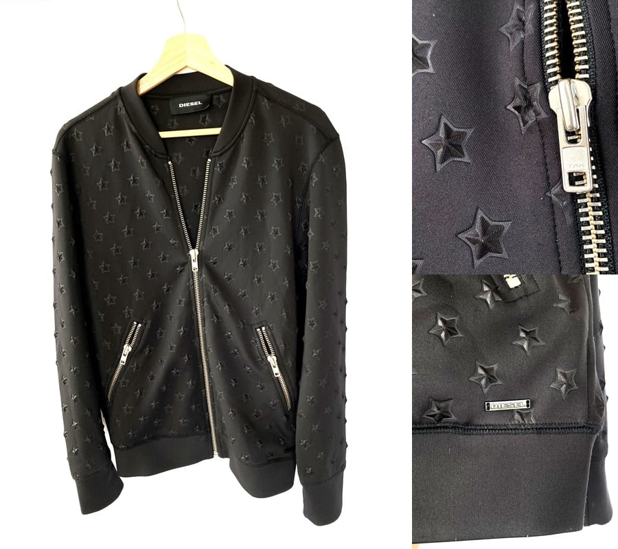 DIESEL ディーゼル スター エンボス MA-1 ブルゾン ストレッチ ジャケット メンズ S ブラック