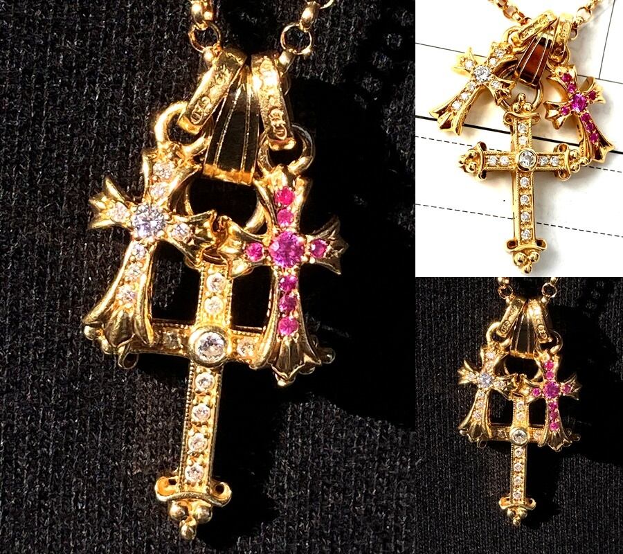 チェーンはクロムハーツのYGロールチェーンと同じサイズの、デザインのK18ロールチェーンです(社外)