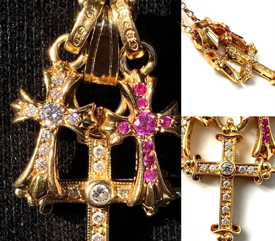 CHROME HEARTS クロムハーツ CHクロス 22K ベビーファット チャーム パヴェダイヤ ベビーファット パヴェルビー Justin Davis K18YG パヴェダイヤ クロス ネックレス