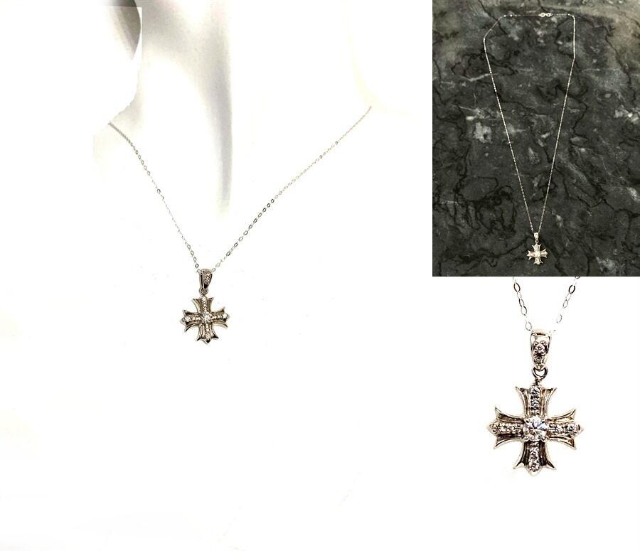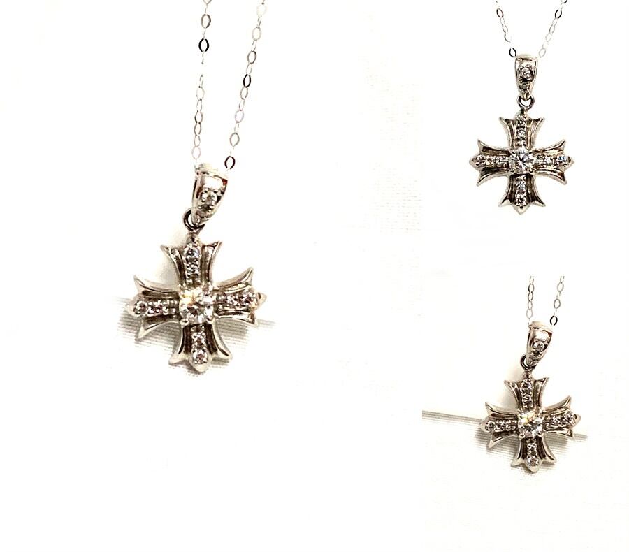 チェーンは社外ですが、このプラチナに合う美しい輝きのK18 WGの細身チェーンを組み合わせております。