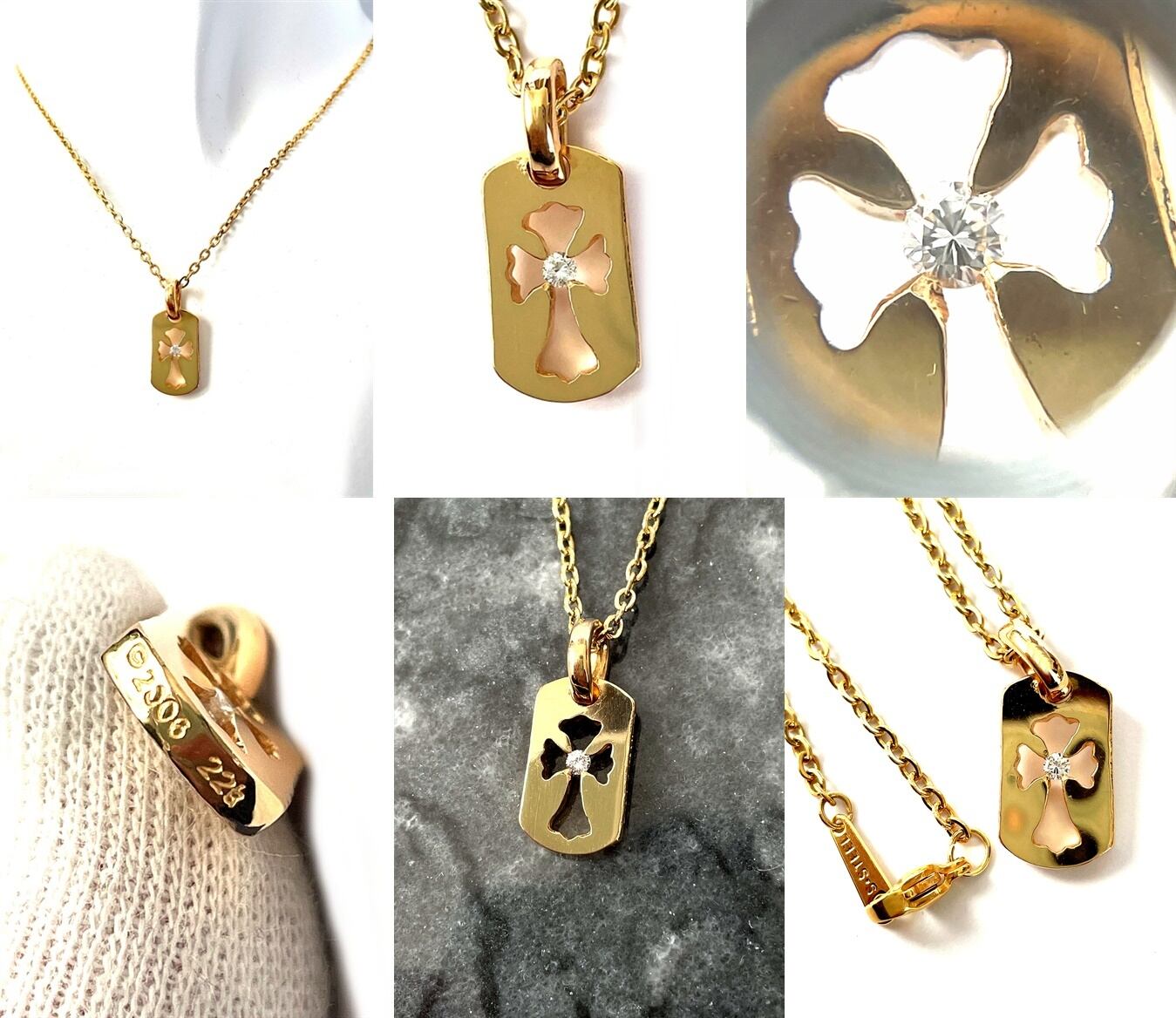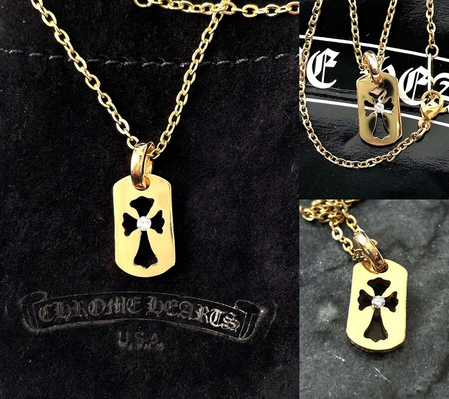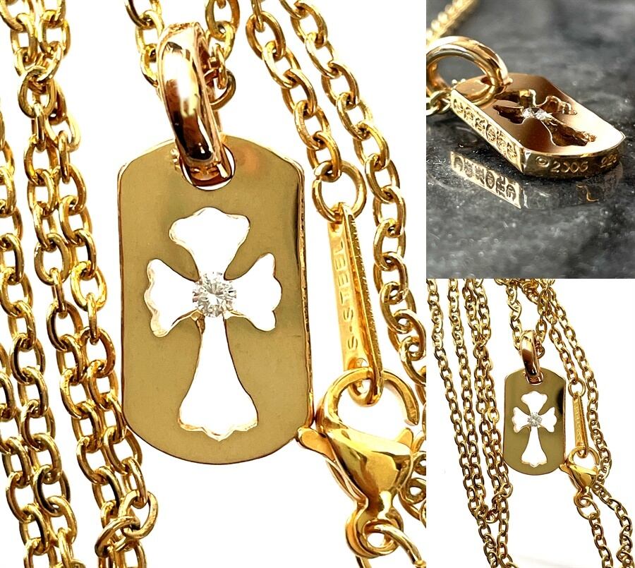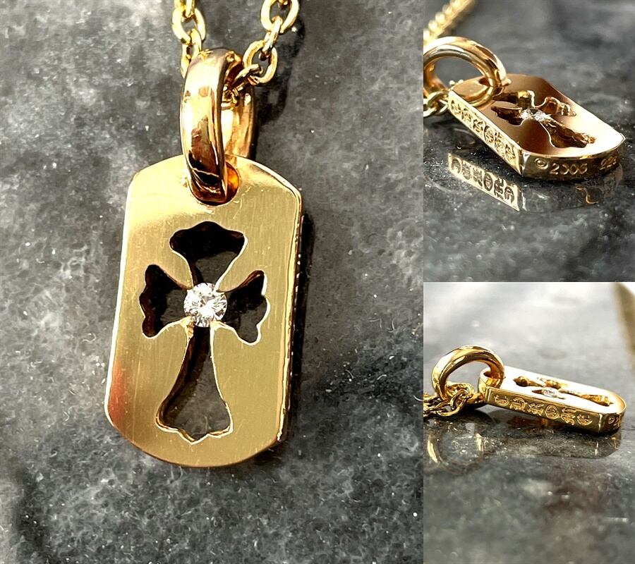 CHROME HEARTS クロムハーツ カットアウト クロス ドッグタグ with ダイヤモンド 22K ゴールド