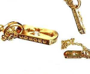 ゴールドのプレートの中央をCHクロスでデザインして、クロスの中央に美しい輝きを放つ最高級のワンポイントダイヤモンドを詰め込んだ逸品。