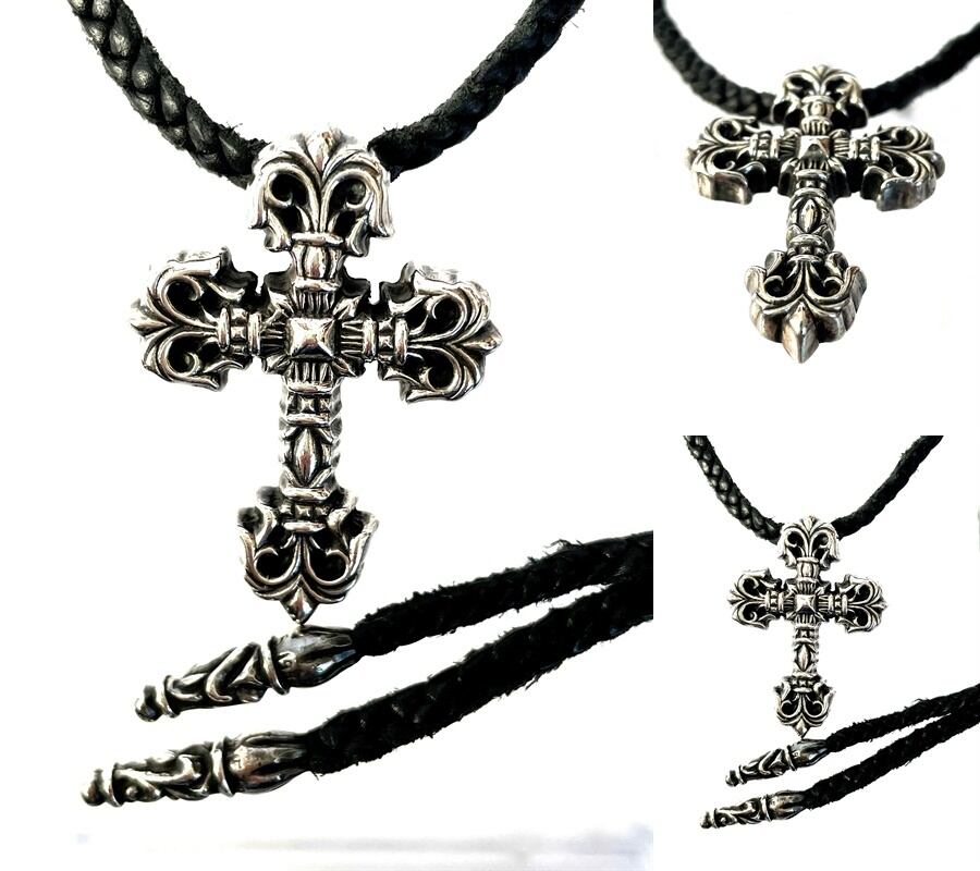 クロムハーツ CHROME HEARTS フィリグリークロス ペンダント ネックレス XS レザーブレイド スクロールブレイド ボロチップ