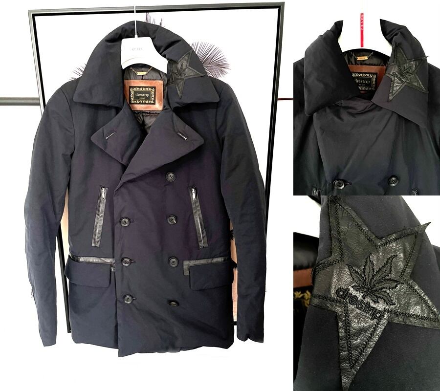drestrip ドレストリップ ギャバ ライダース ダウン Pコート ディアスキン ロゴパッチ ブラック メンズ 1
