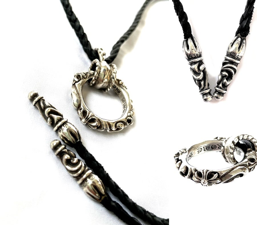 チェーンはクロムハーツの上質なレザーとシルバーを使用したボロチップのレザーブレイド!
