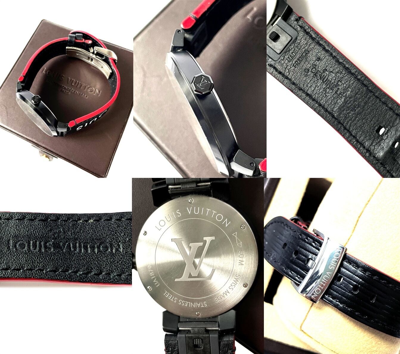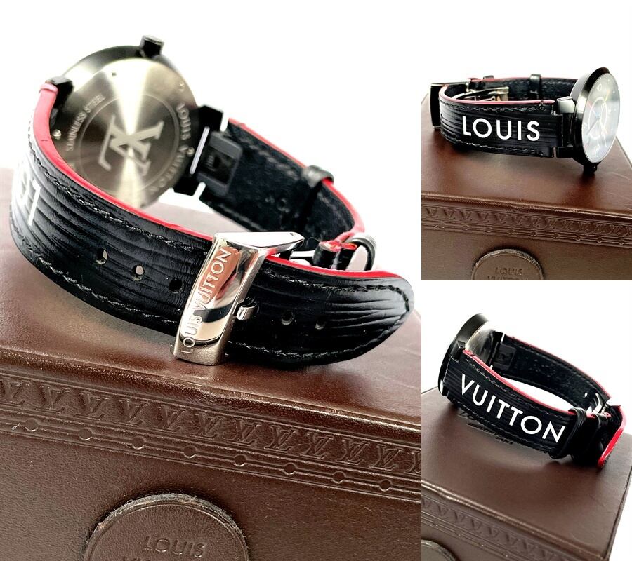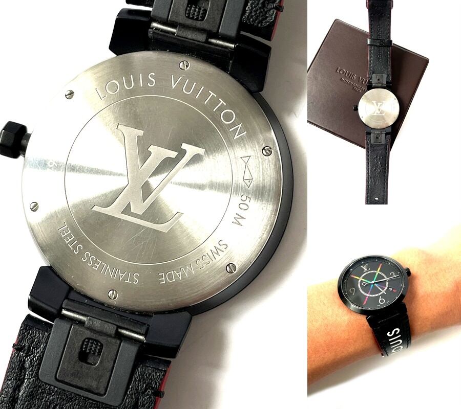 LOUIS VUITTON ルイヴィトン タンブール スリム レインボー ブラック 39 デイト クオーツ QA113 メンズ ブラックPVDコーティング
