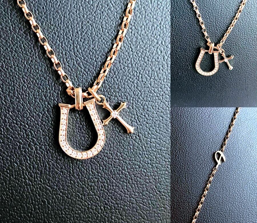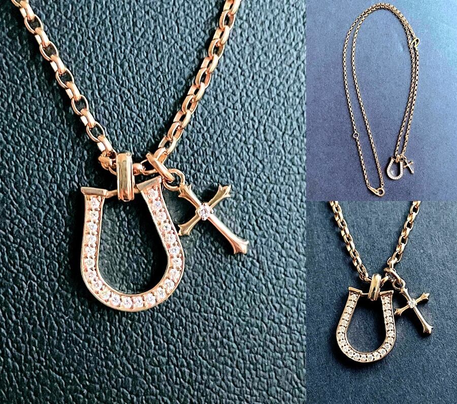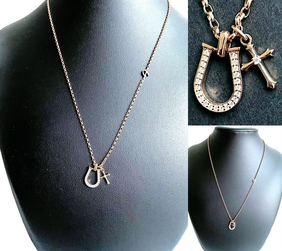 Per noi ペルノイ K18 PG クロス ホースシュー ペンダント ネックレス ピンクゴールド パヴェ ダイヤモンド
