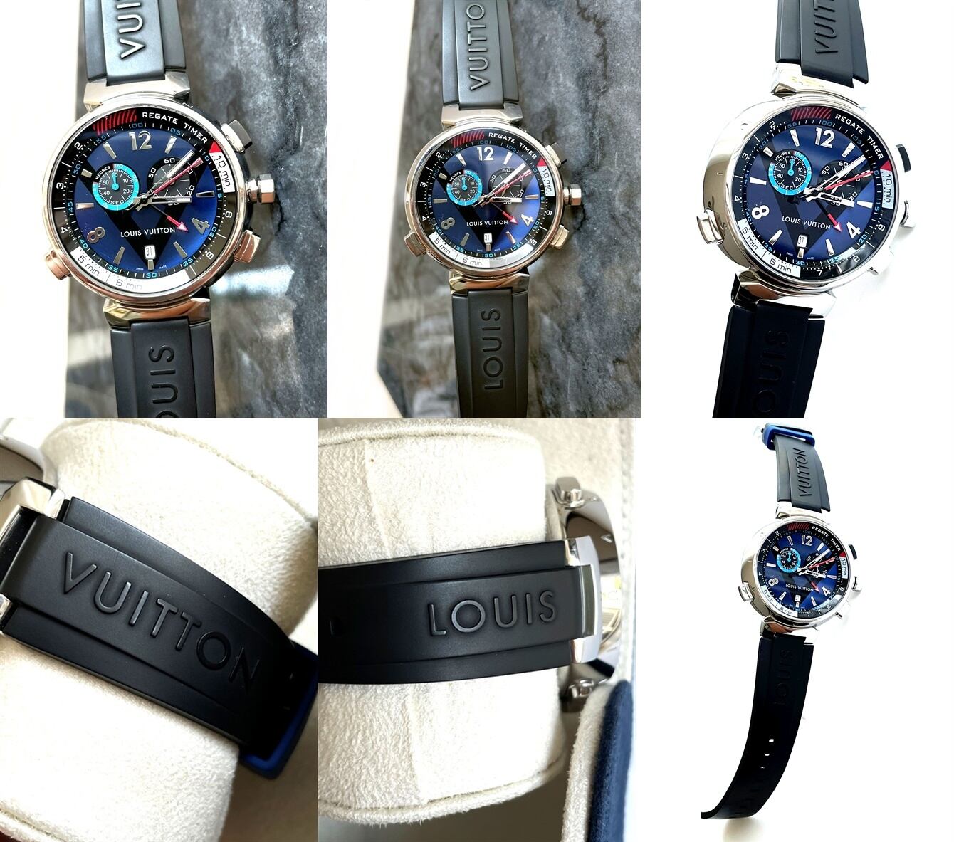 LOUIS VUITTON ルイヴィトン タンブール レガッタ クロノグラフ デイト TAMBOUR Blue Q102D