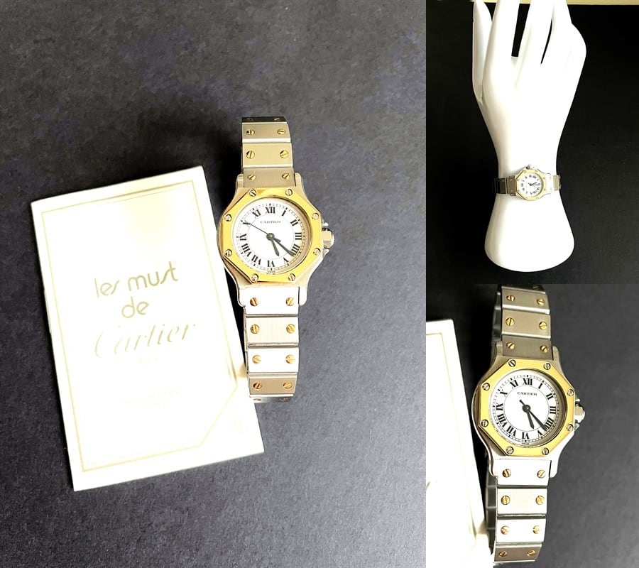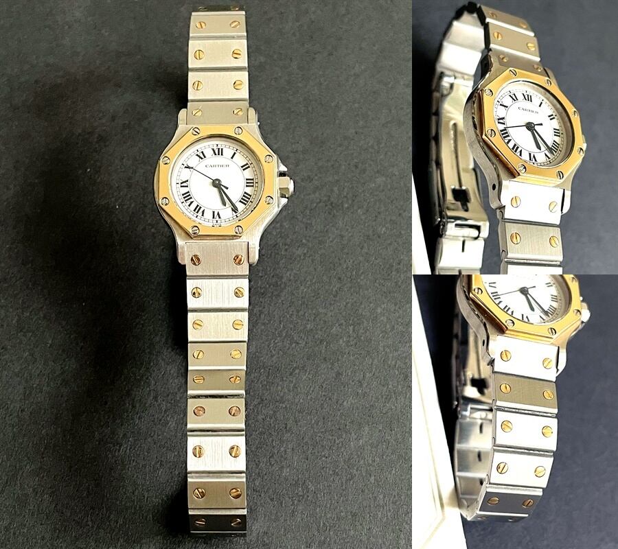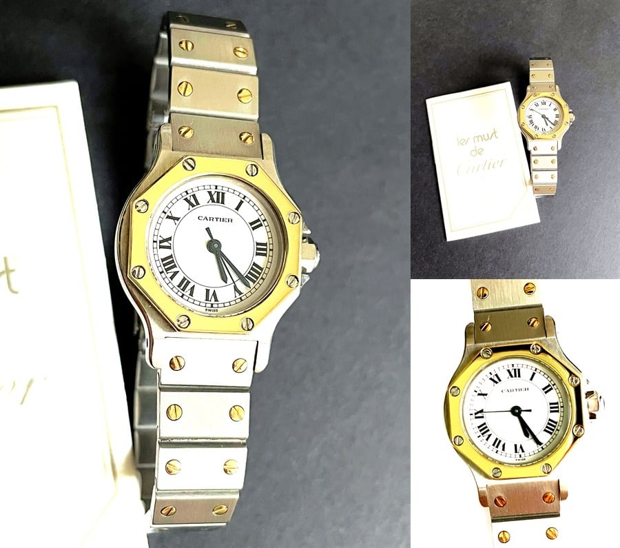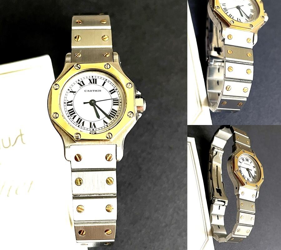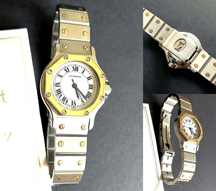 八角形を意味するオクタゴンのモデル名が付けられたサントスオクタゴン、ベゼルやブレスにK18YGゴールドを使用しており高級感があり、ラグジュアリーウォッチの先駆け的な名品です。