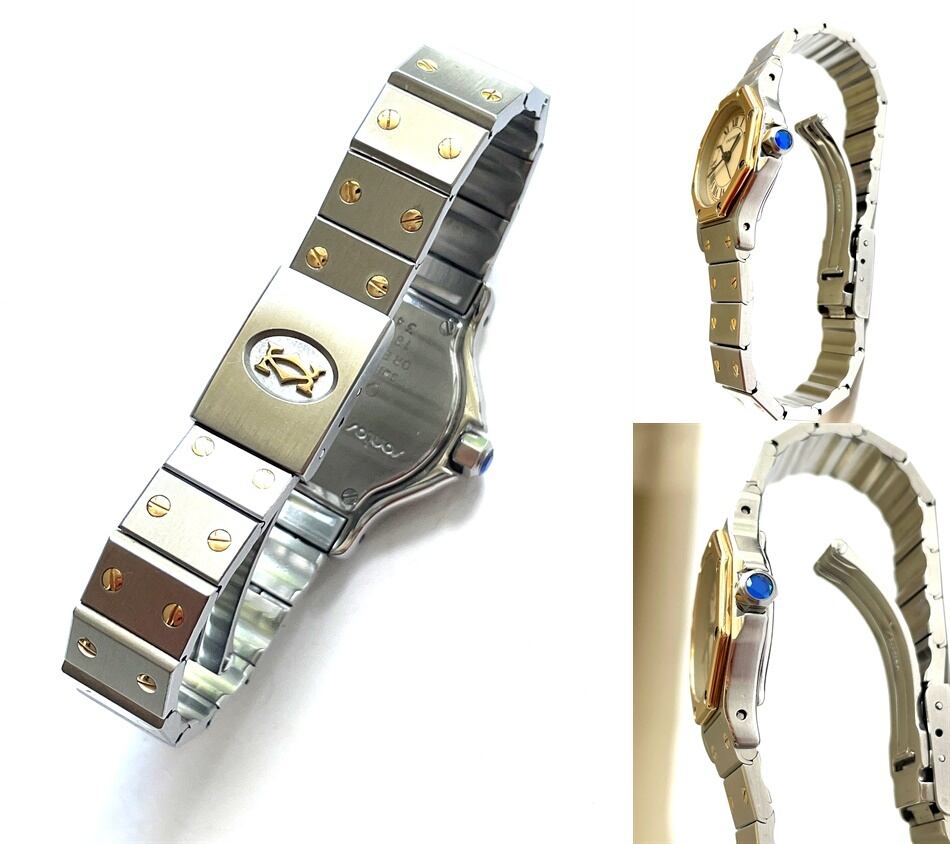 八角形を意味するオクタゴンのモデル名が付けられたサントスオクタゴン、ベゼルやブレスにK18YGゴールドを使用しており高級感があり、ラグジュアリーウォッチの先駆け的な名品です。