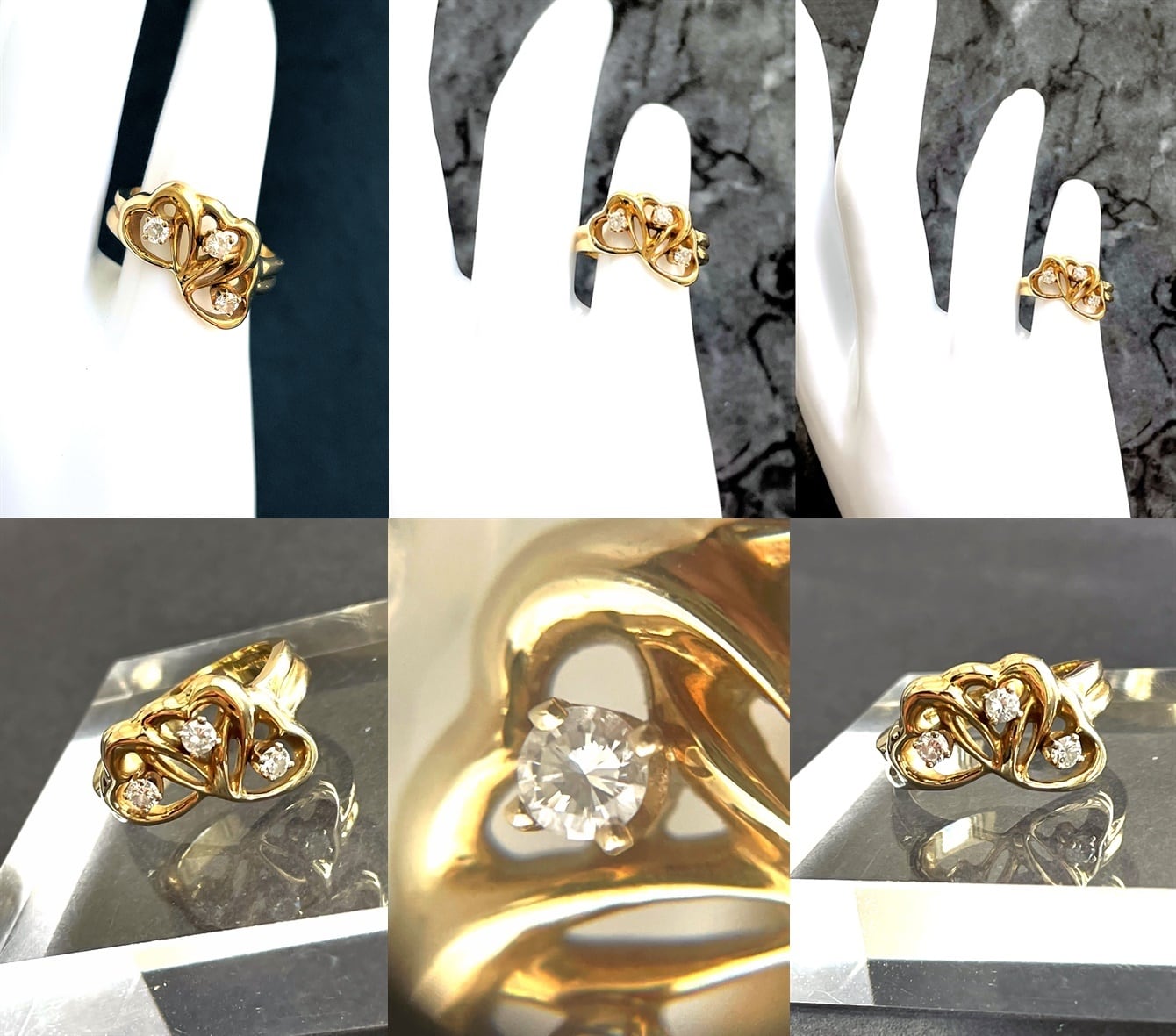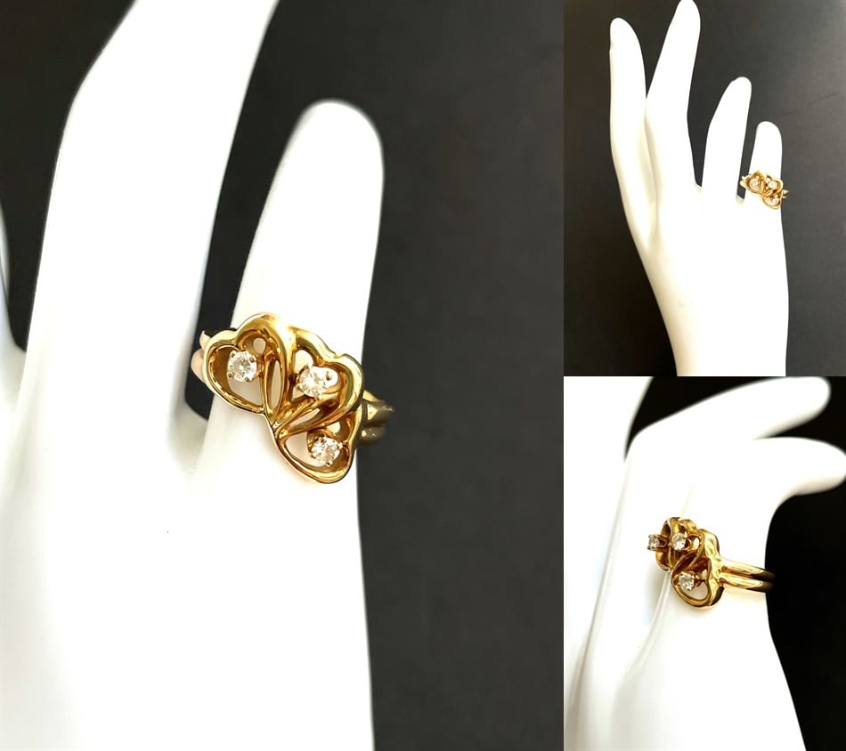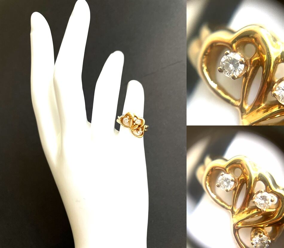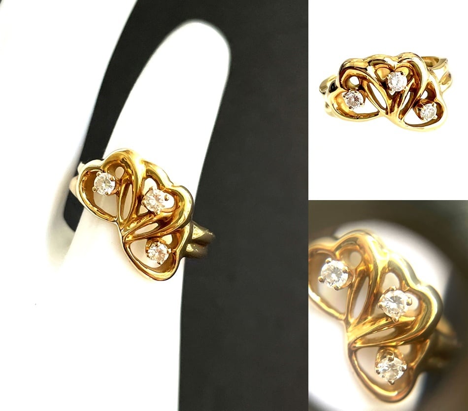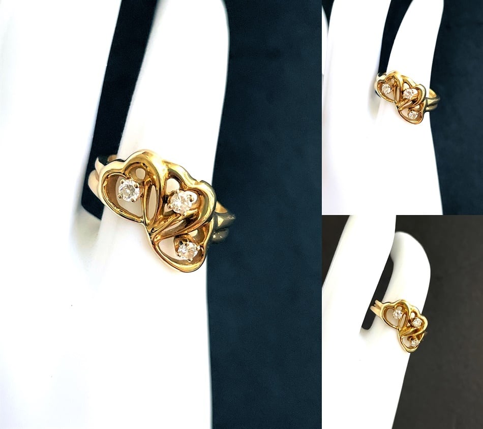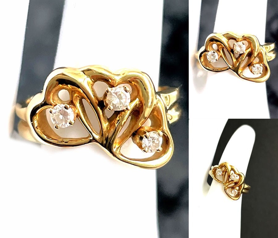 TIFFANY ティファニー K18 YG 750 トリプルハート 3P ダイヤモンド リング