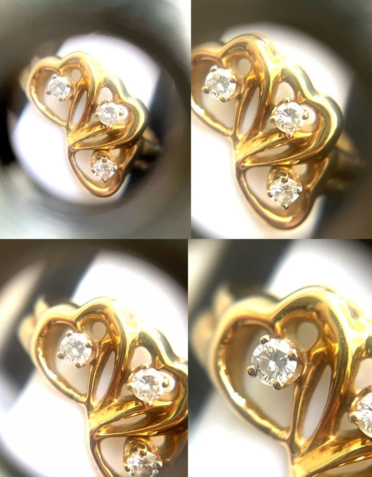 存在感あるK18イエローゴールドのトリプルハートに、ティファニーが厳選した無色透明のVSクラス最高級のダイヤモンドが3ポイントセットされています。