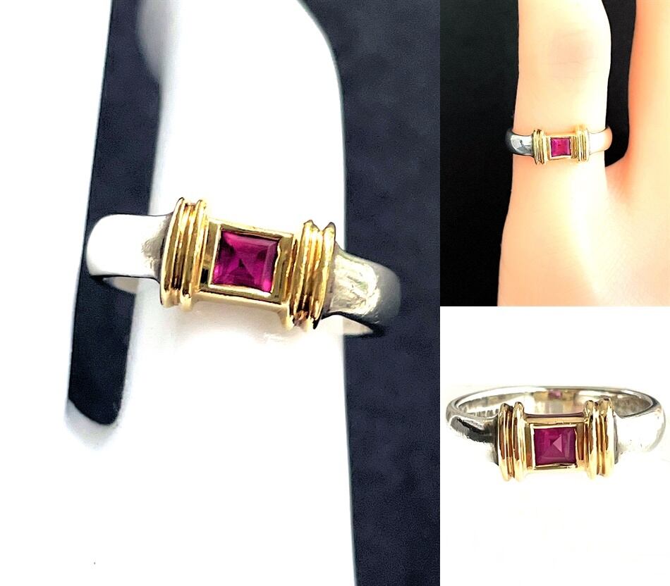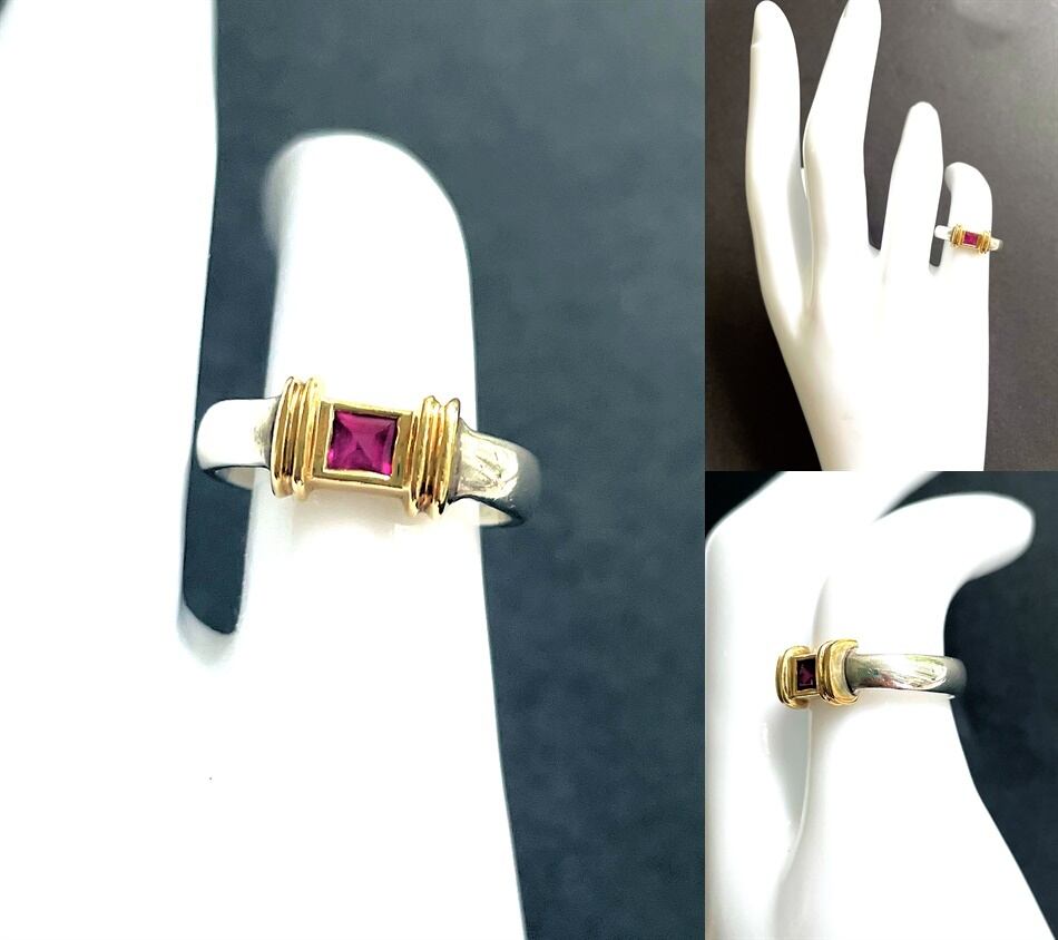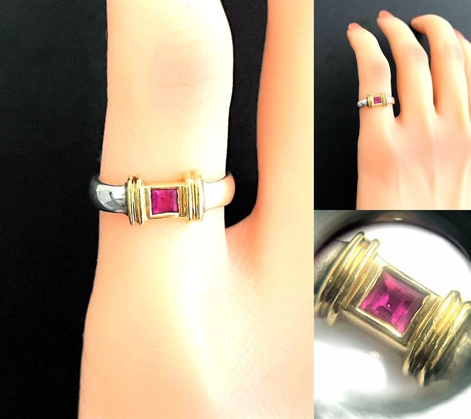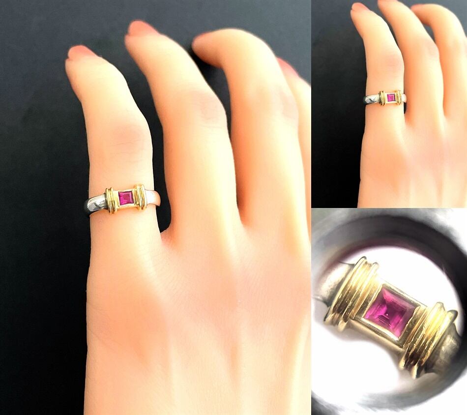 TIFFANY ティファニー K18 YG 750 SV925 コンビ ルビー スタッキング バンド リング 指輪 ヴィンテージ