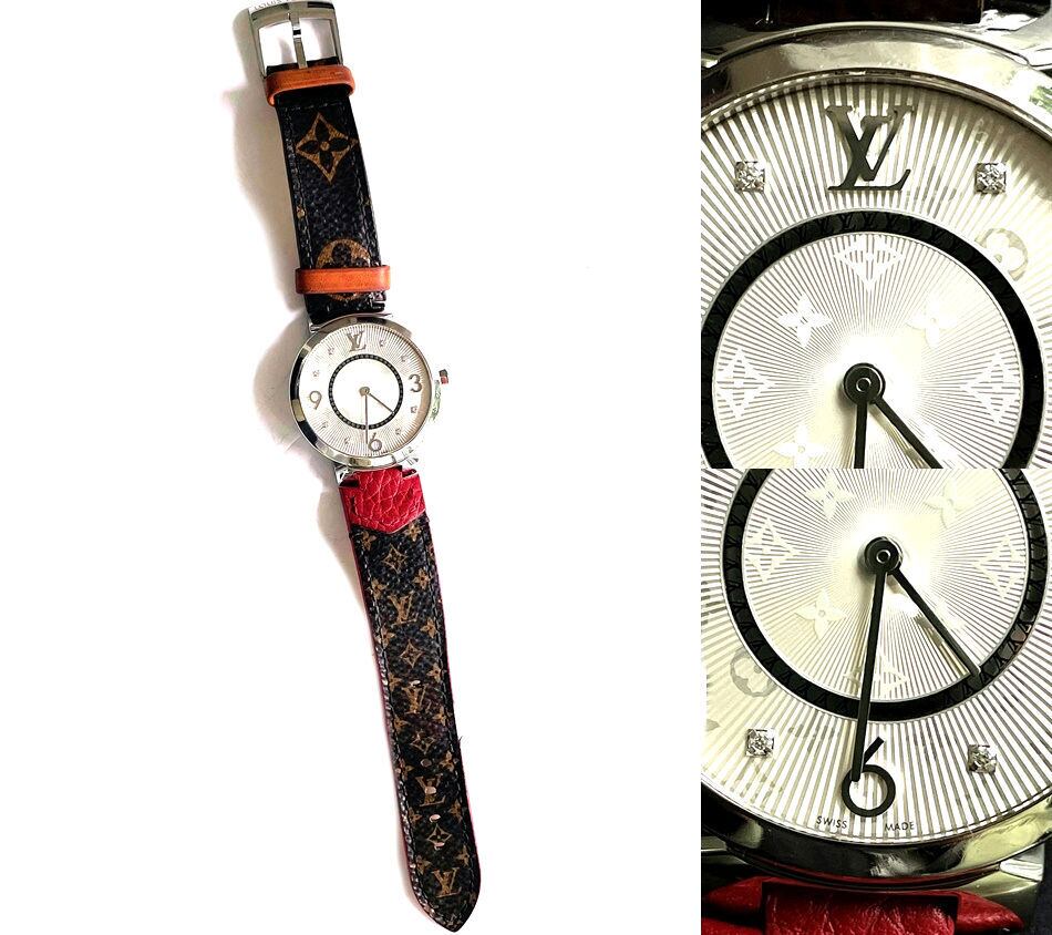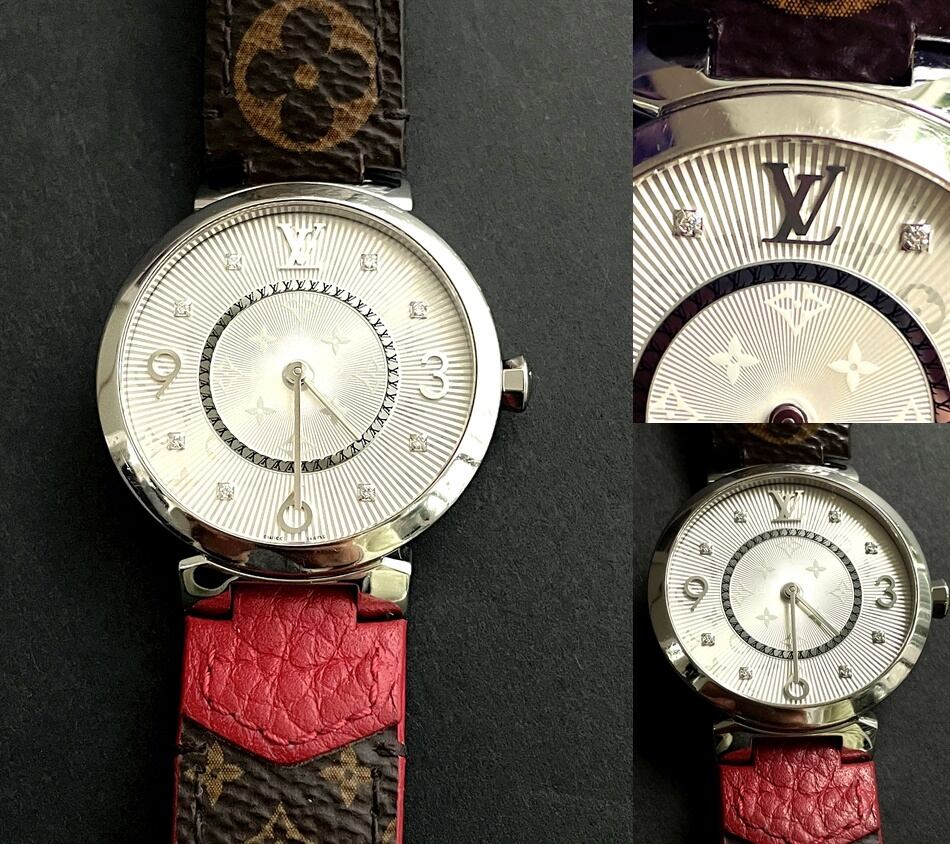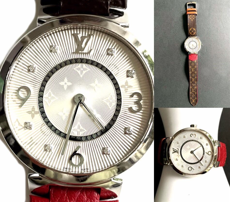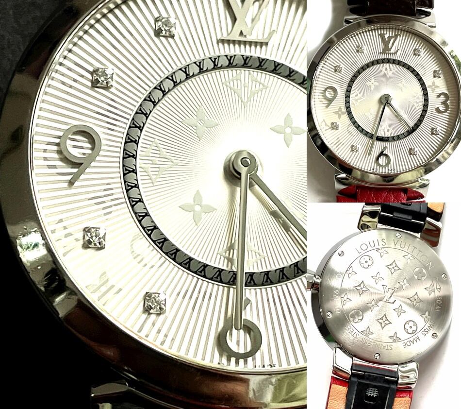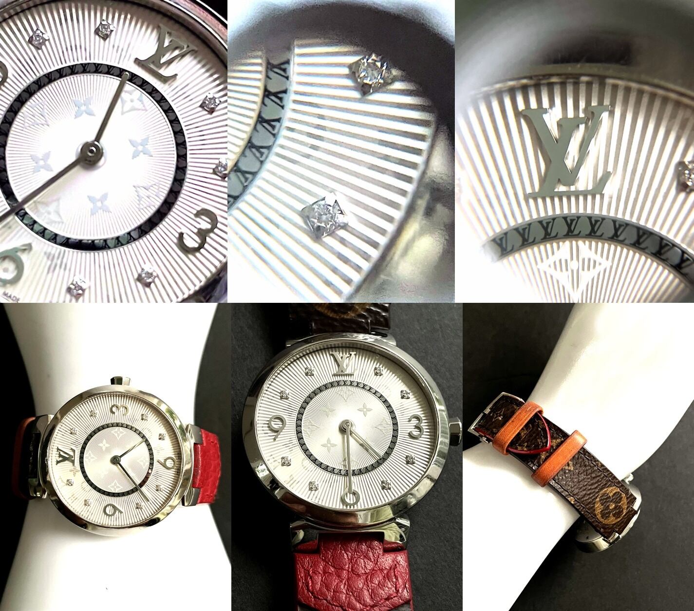 LOUIS VUITTON ルイヴィトン タンブール スリム モノグラム ダイヤモンド 8P 時計 Q13MJ レザー
