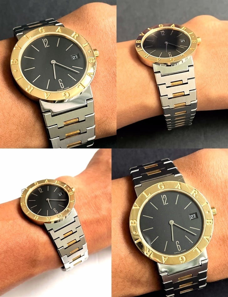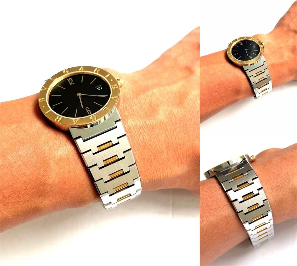 通常のブルガリブルガリと違い、ラグジュアリー感あるイエローゴールドが輝き、非常に高級感あるモデルです。