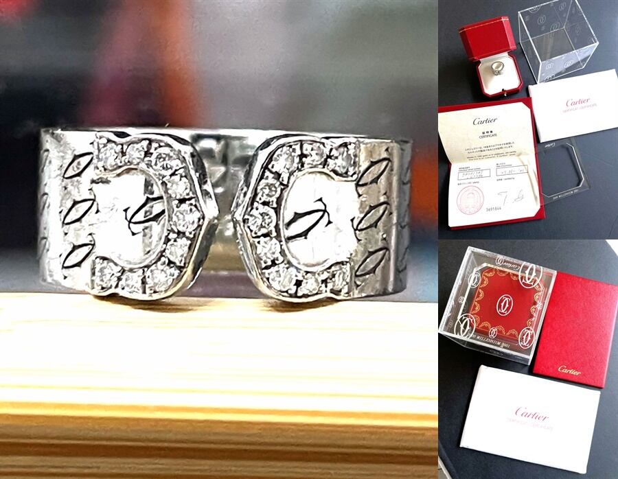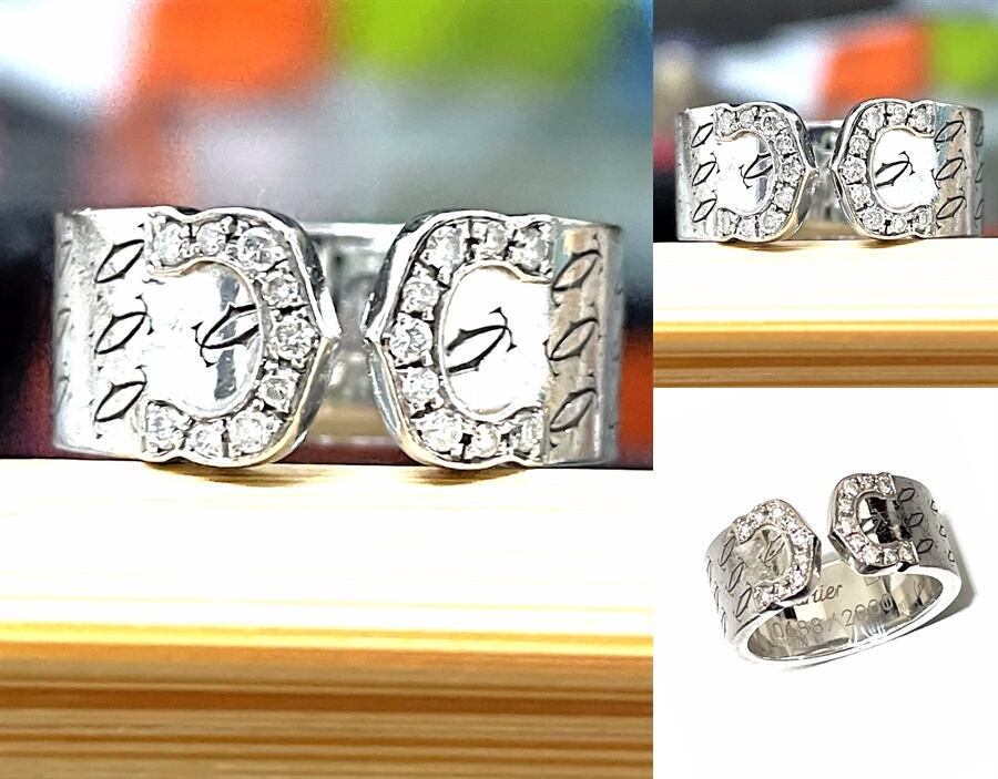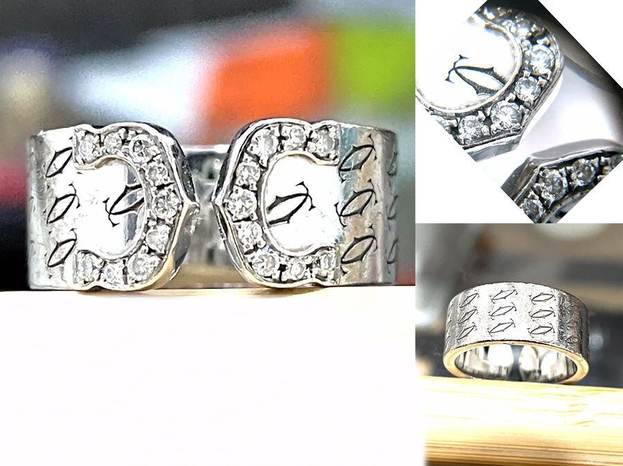 通常の2Cリングと違い、表面全体をカルティエロゴのデザインにした限定モデルです。