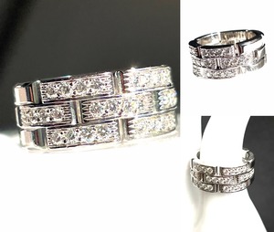 三連の高級感ある輝きを放つパヴェダイヤが豪華なダイヤモンドリングです。
