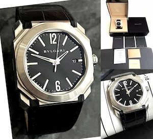 BVLGARI ブルガリ オクト ソロテンポ 38㎜ BGO38S 時計 クロコレザー 自動巻き 裏スケ シースルーバック ブラック 完備品
