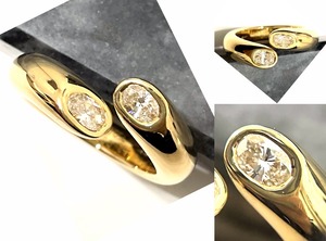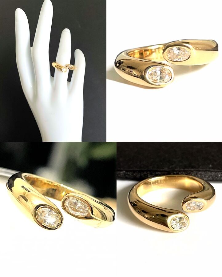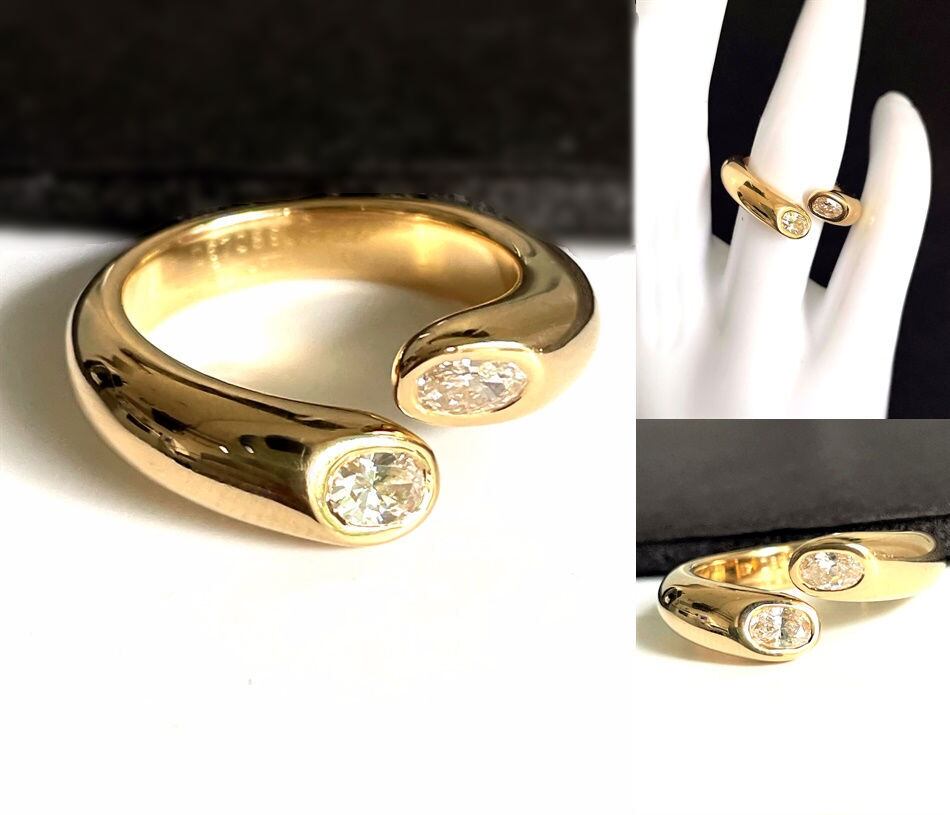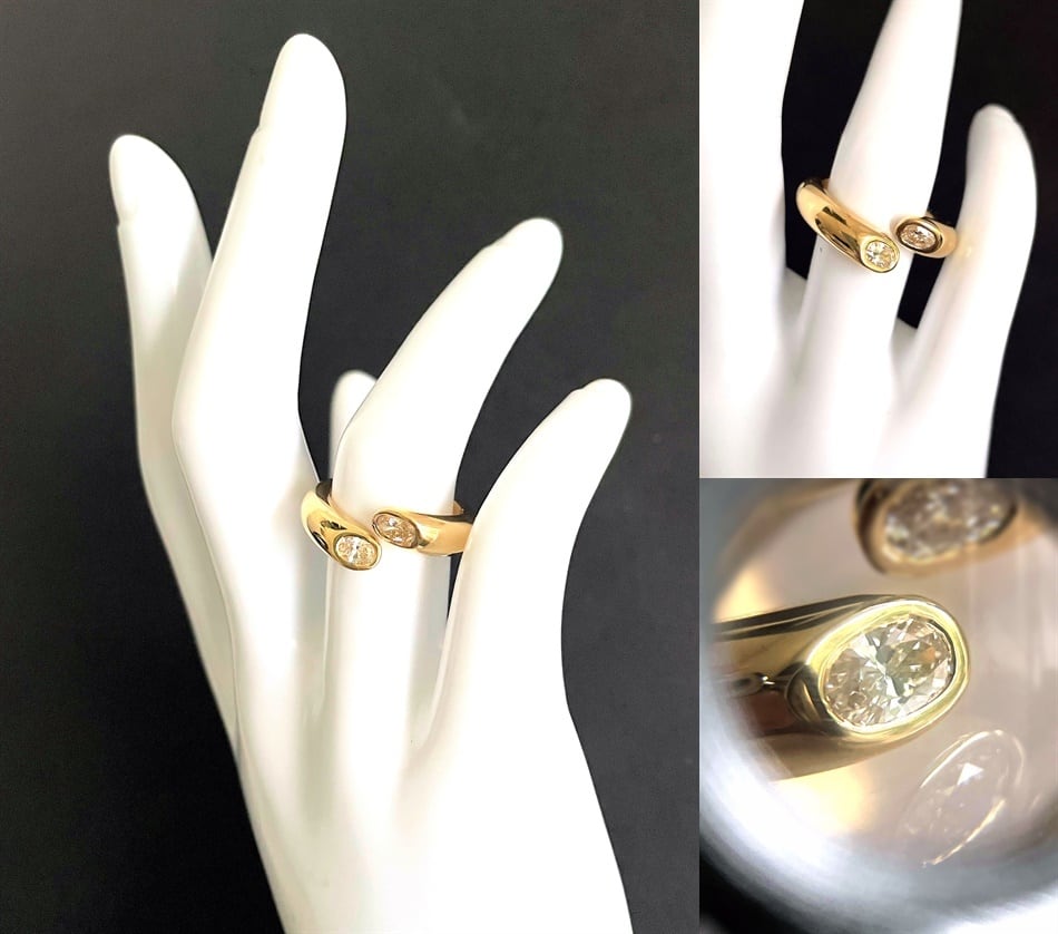 向かい合うアームに大粒の最高級のオーバルダイヤを2つセットした豪華なダイヤモンドリング。