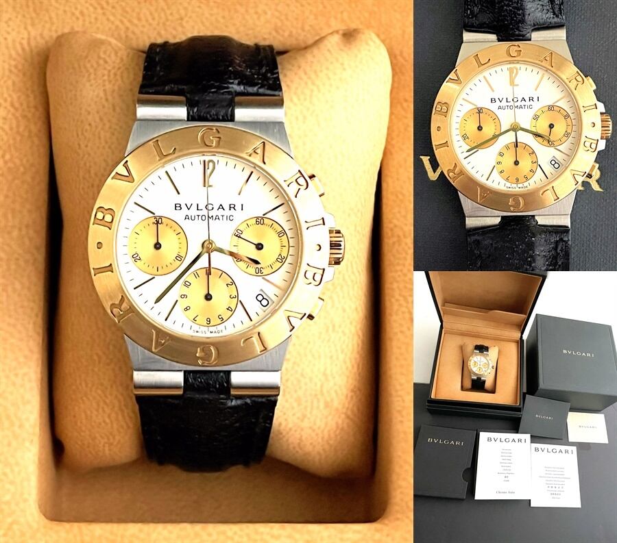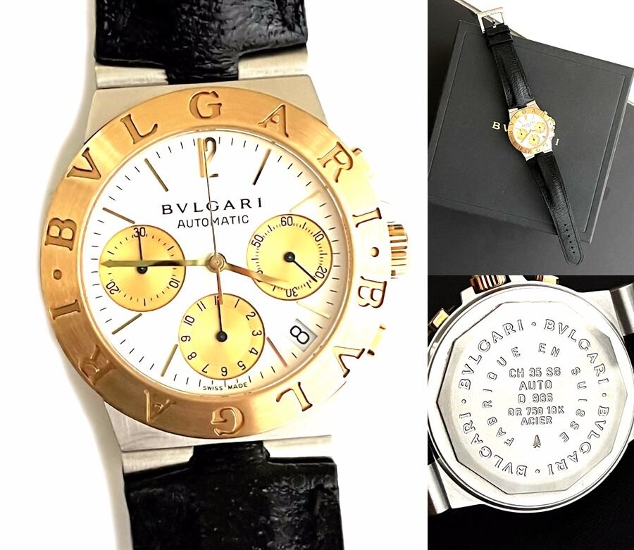 BVLGARI ブルガリ K18 YG ディアゴノ クロノグラフ 自動巻き 時計 メンズ 純正 白文字盤