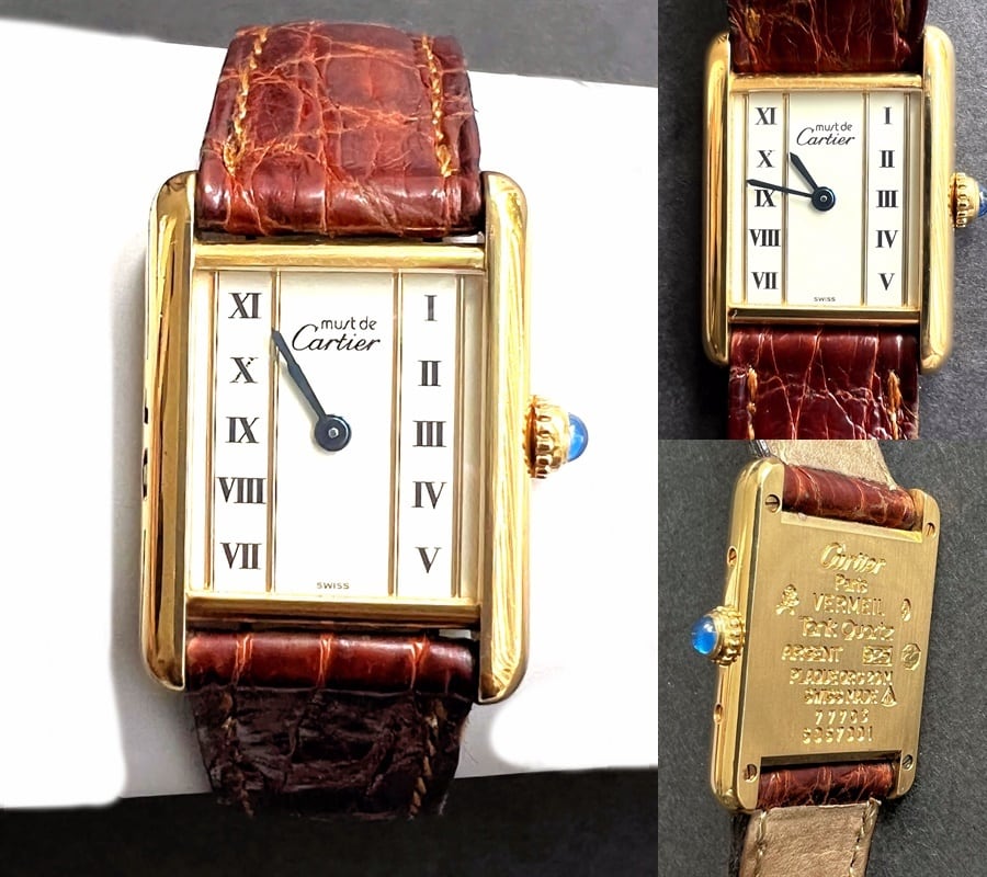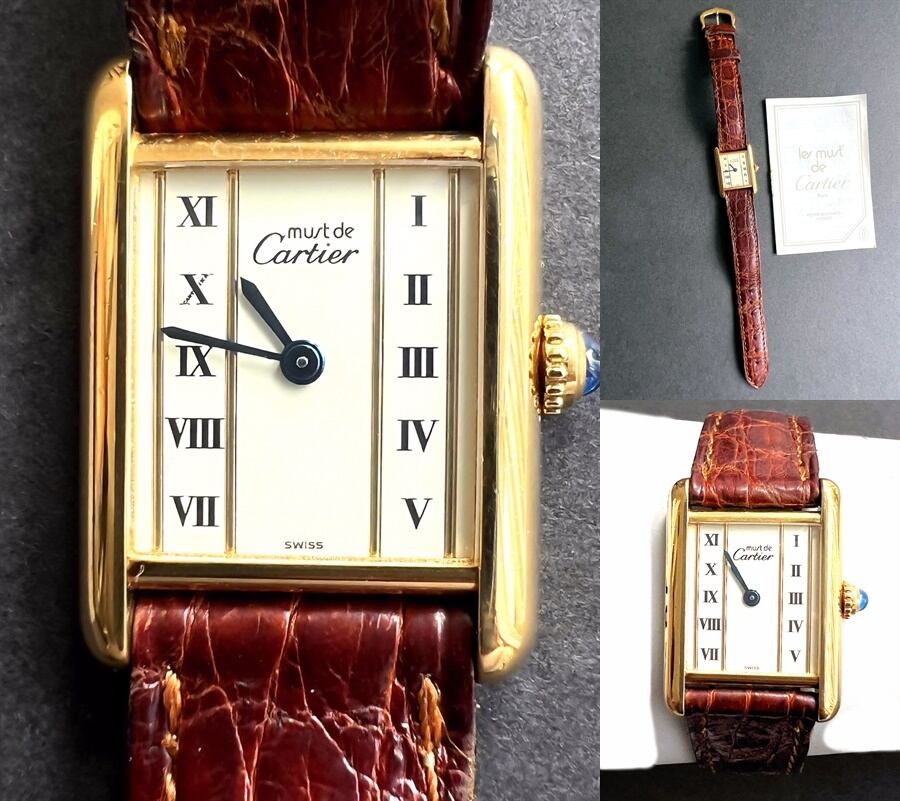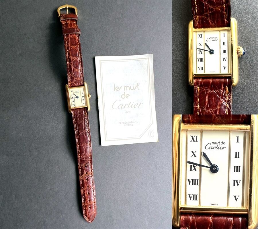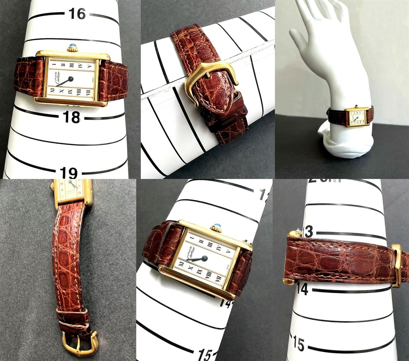 Cartier TANK カルティエ マストタンク クラシカル 純正 クロコ レザー 時計 ヴェルメイユ SM ゴールド ローマン 男女